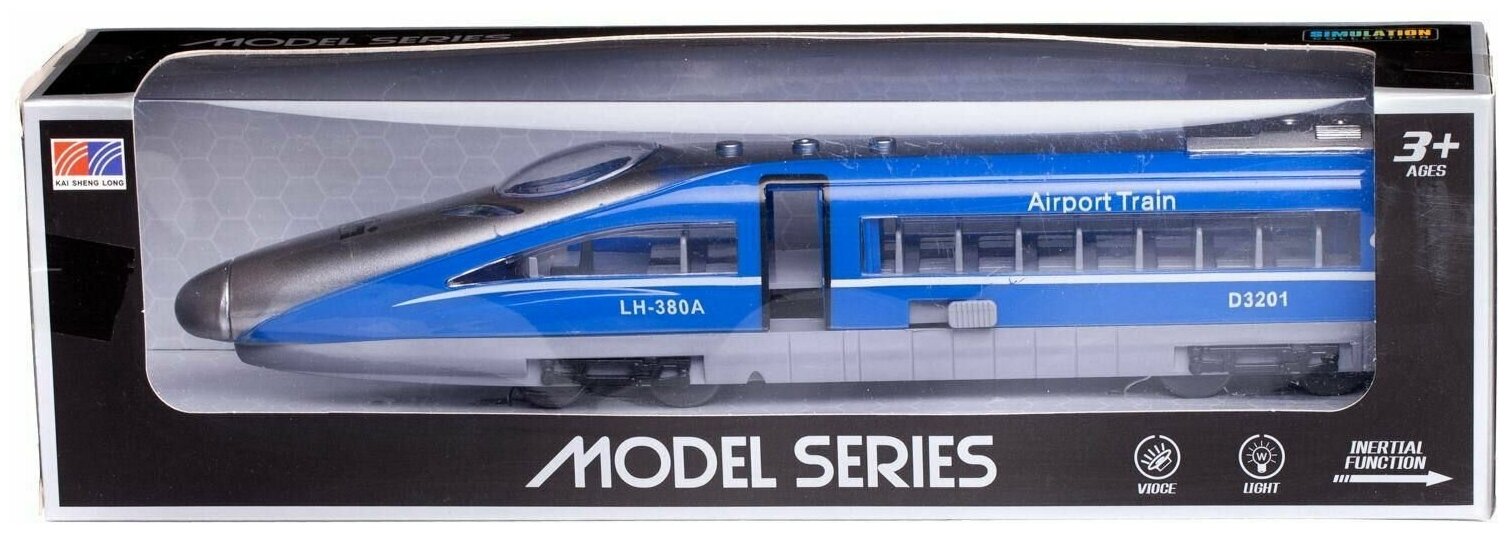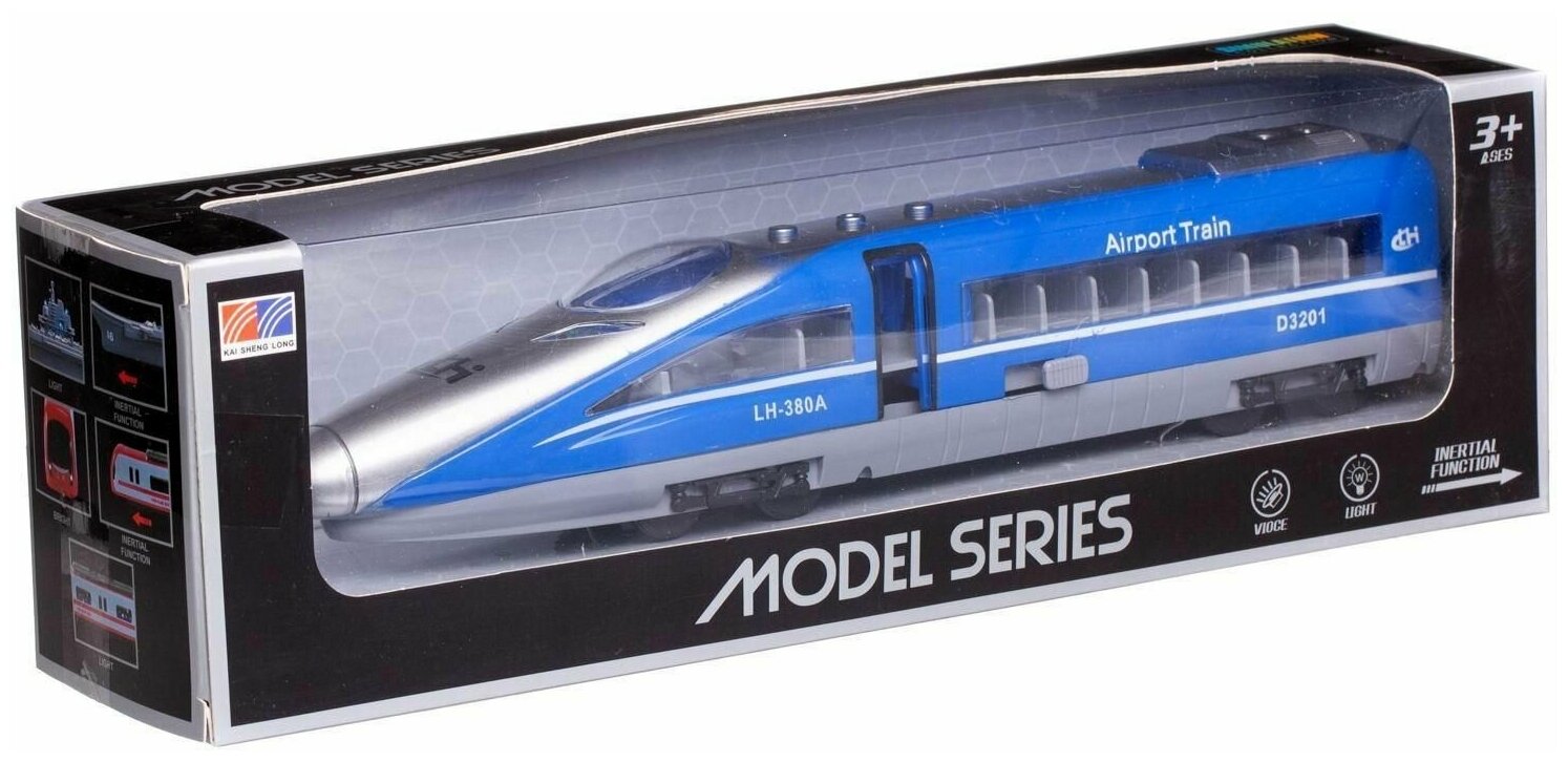 Поезд скоростной, инерционный, синий, размер коробки 32x7,5x9,5, со световыми и звуковыми эффектами