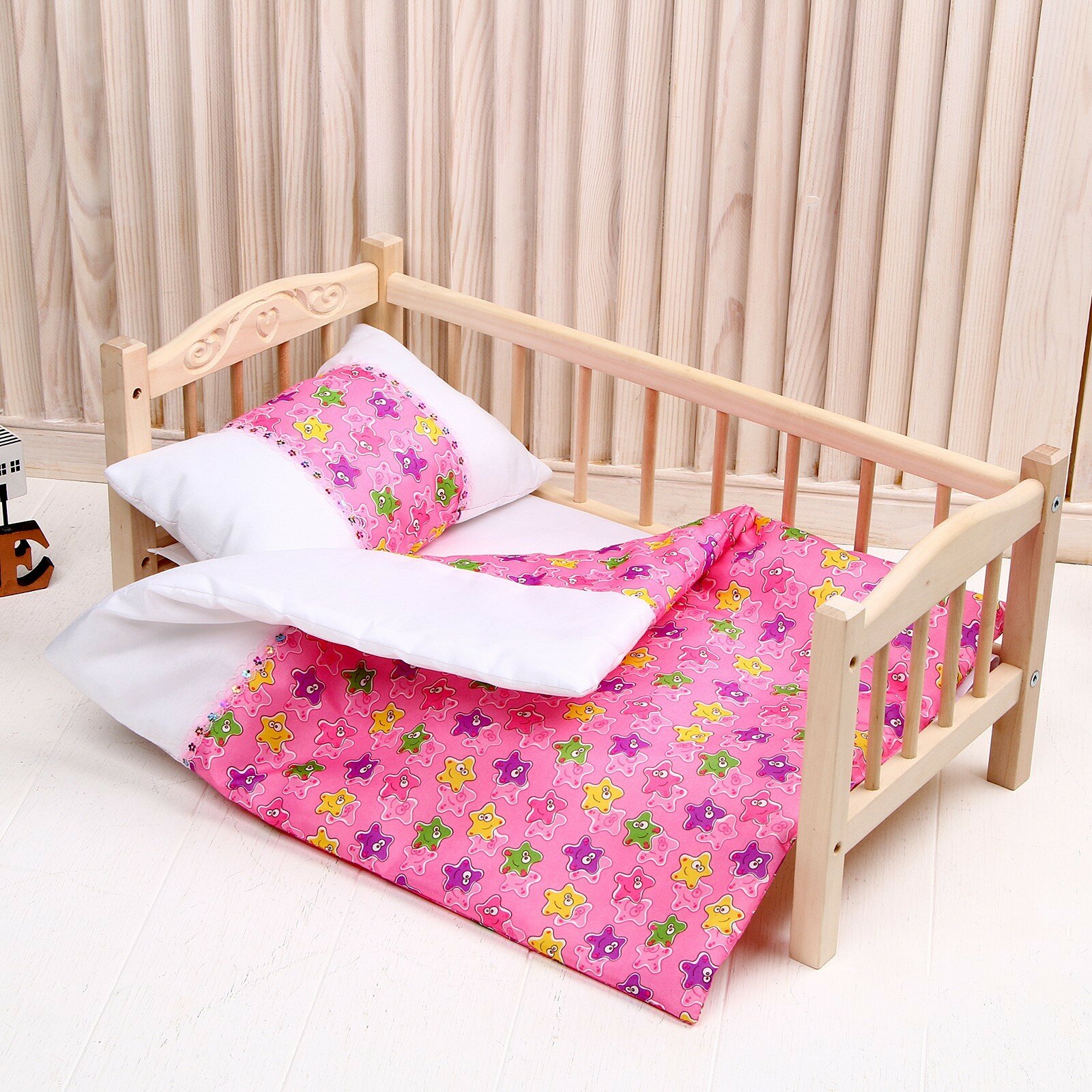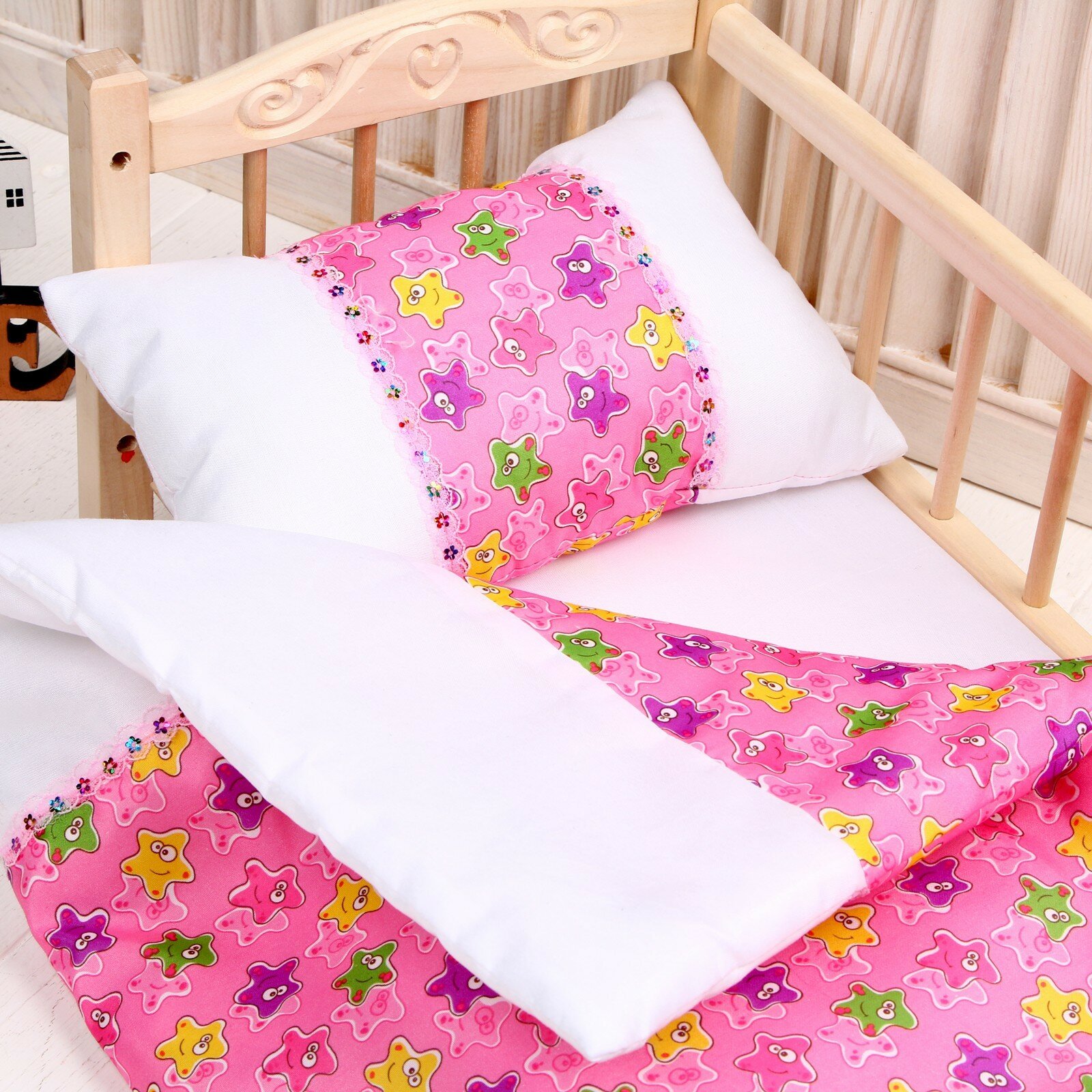 Кукольное постельное «Медузы на розовом с тесьмой»: простынь, одеяло 46 × 36 см, подушка 23 × 17 см интересное: