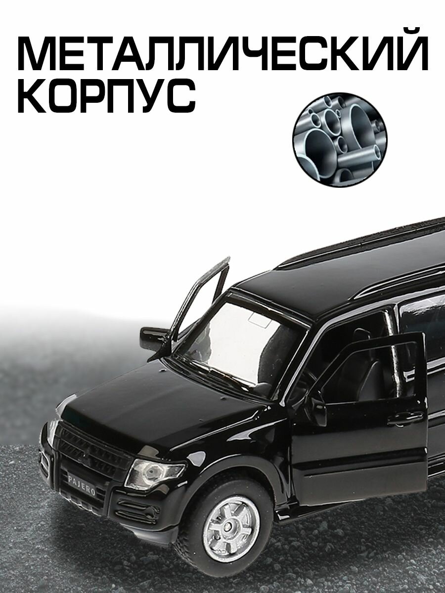 Машинка детская Mitsubishi Pajero 12 см, Технопарк, черная, открываются двери и багажник, металлический корпус