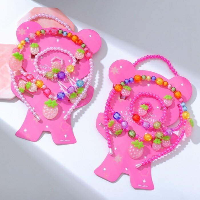 Купить Выбражулька Комплект детский «Выбражулька» 9 предметов: ободок, 2 резинки, 2 заколки, клипсы, кулон, браслет, кольцо, мишки, цвет микс