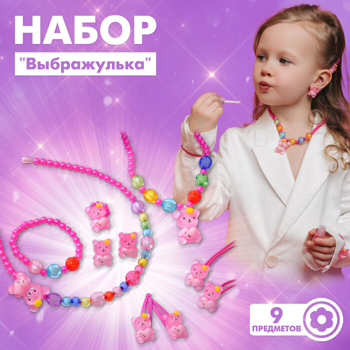 Выбражулька Комплект детский «Выбражулька» 9 предметов: ободок, 2 резинки, 2 заколки, клипсы, кулон, браслет, кольцо, мишки, цвет микс интересное: