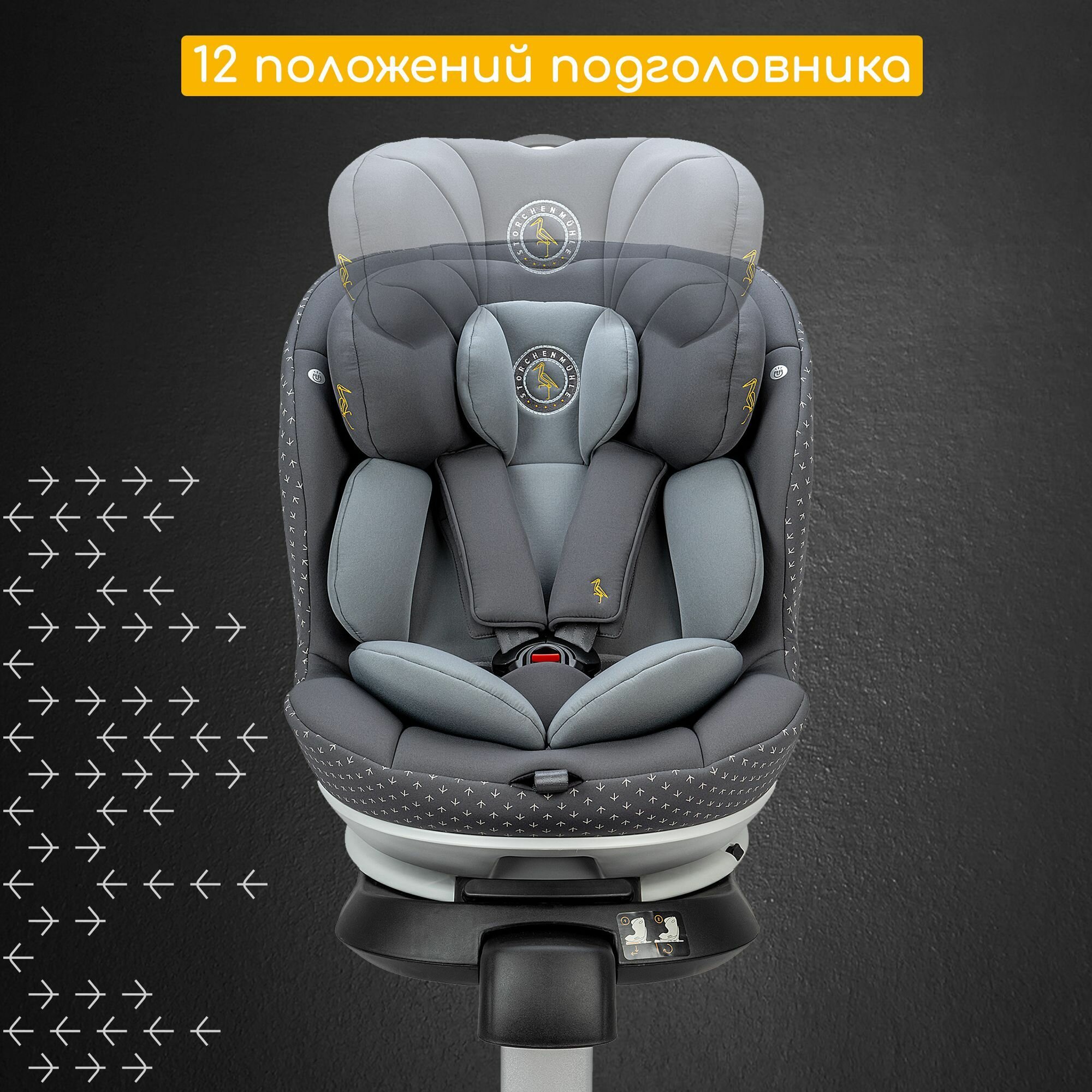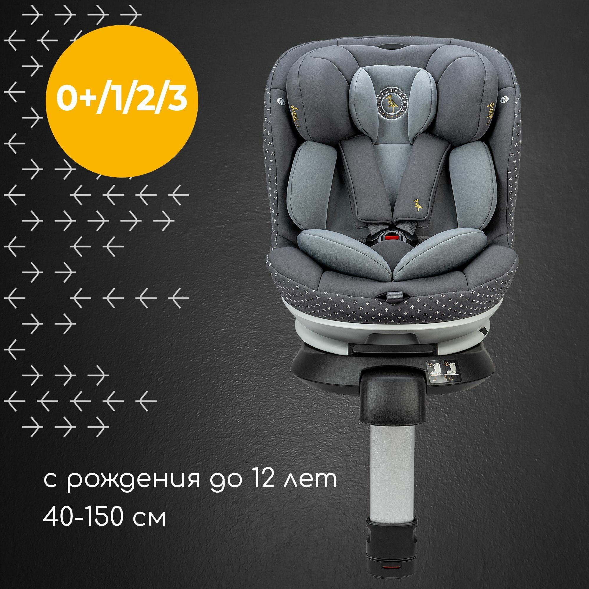 Автокресло детское Storchenmuhle by Osann Niki Complete Asphalt, для новорожденных от 40 см и детей до 150 см (до 12 лет), c isofix и опорой, серый