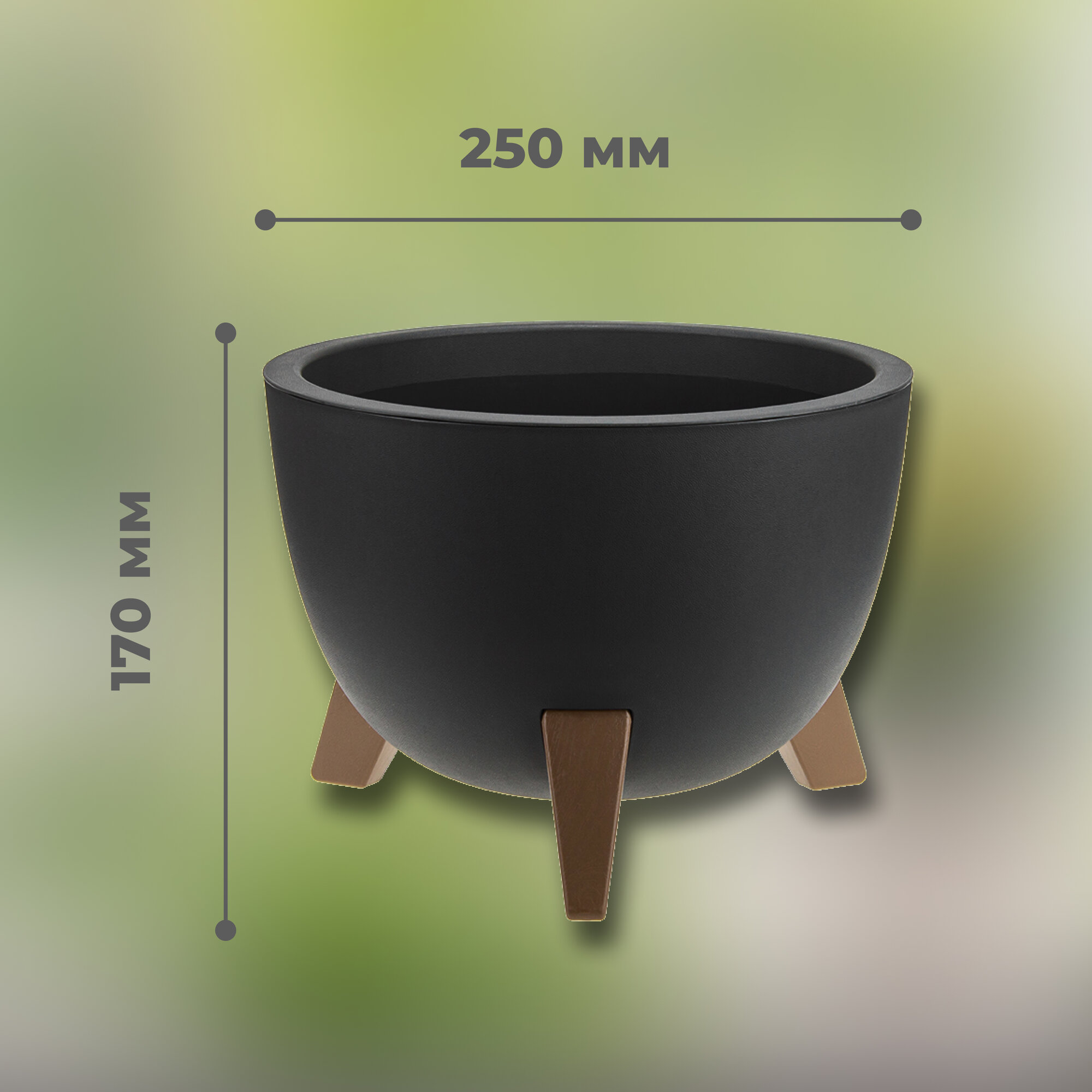 Кашпо на ножках «Флориан», 4,2 л, d=25 см, h=18,5 см, цвет графитовый