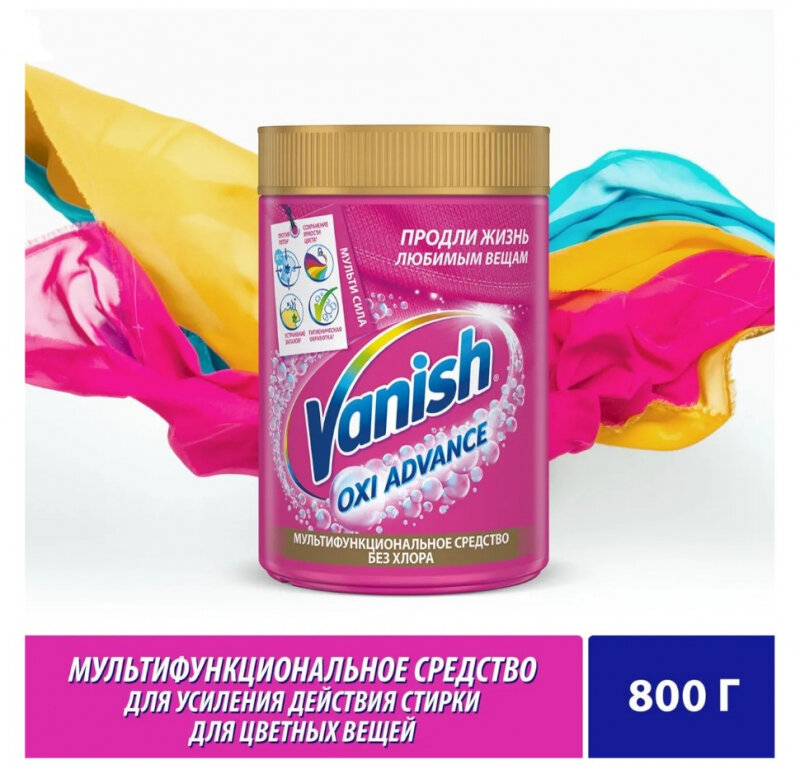 Средство для удаления пятен Vanish 800 г "Oxi Advance", для цветной ткани 3143349