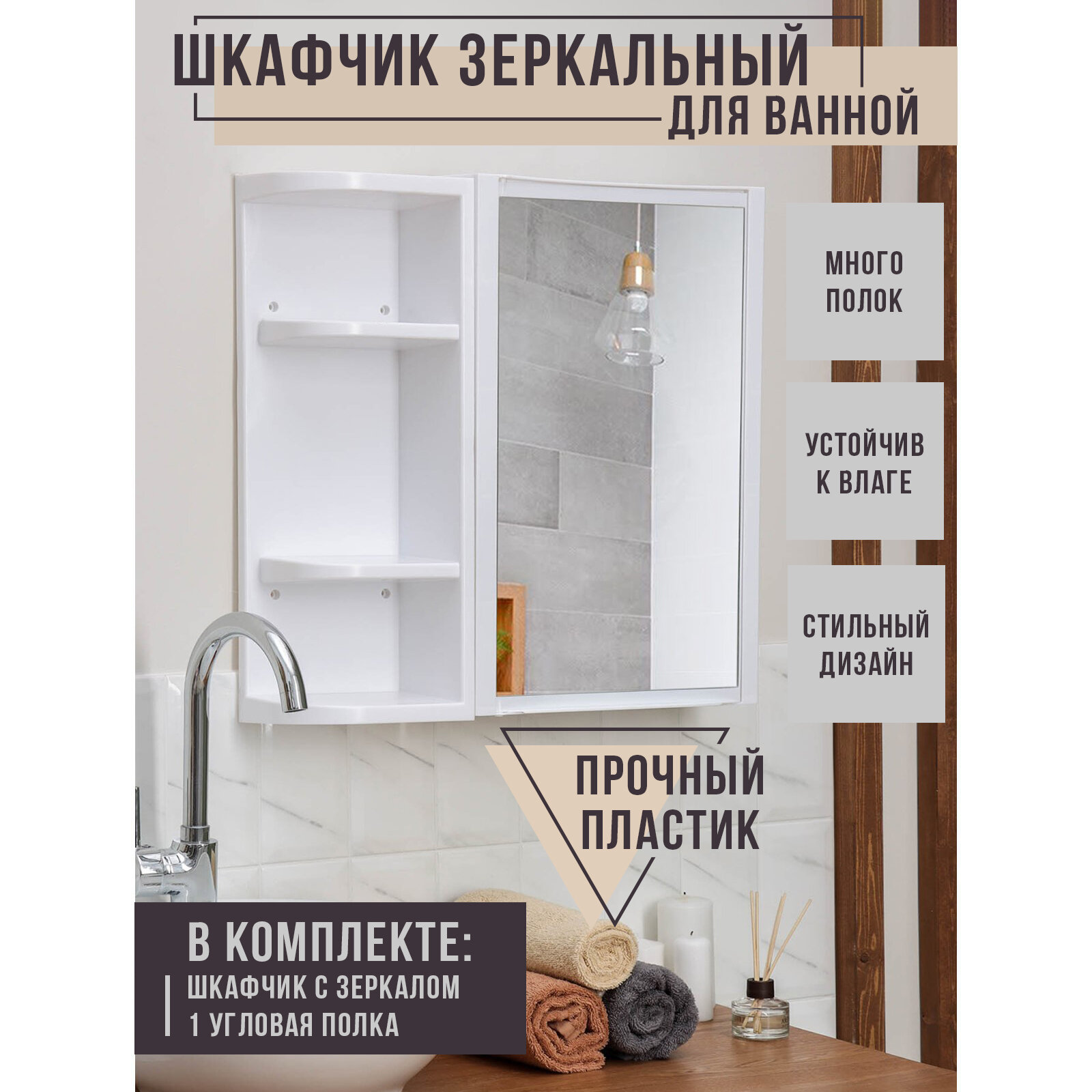 | Комплектация | шкаф-зеркало, боковые полки |