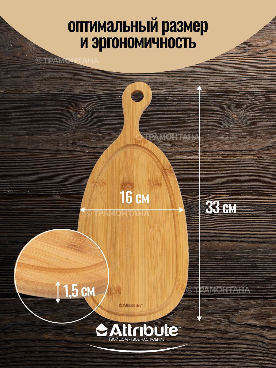 Доска разделочная Attribute BAMBOO CURVE 33х16х1.5см ABX171