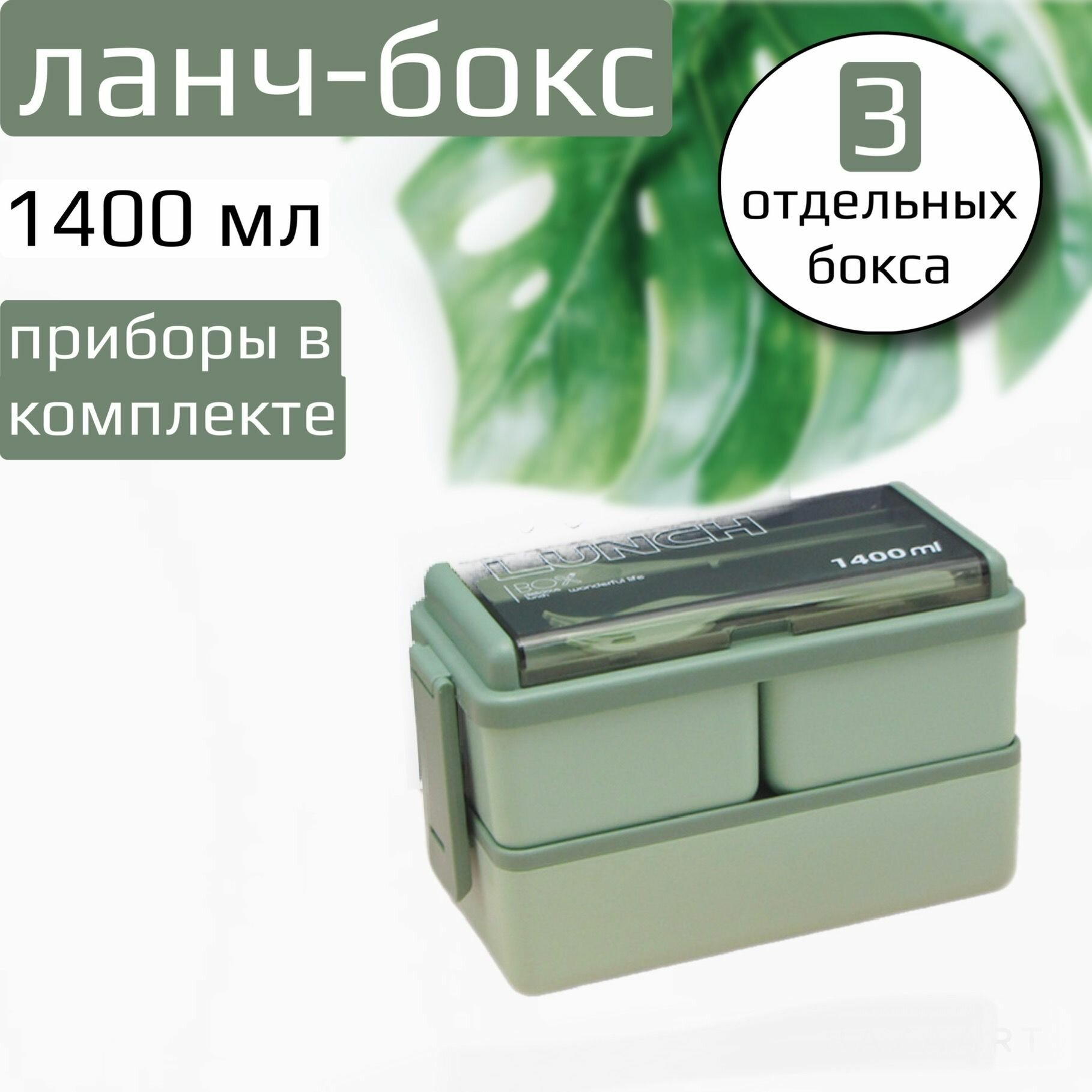 Ланч-бокс герметичный на три отделения без сумки зеленый интересное: