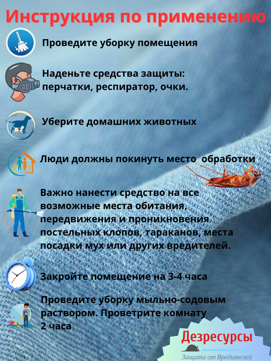Эффектив средство от клопов, тараканов, блох, муравьев, личинок/имаго мух и комаров. Объём 1 л