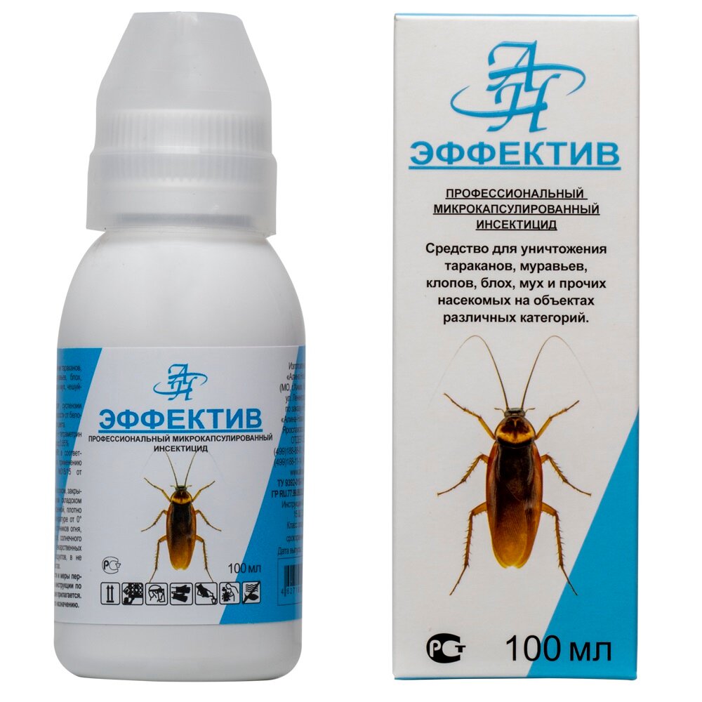 Эффектив (Эфектив) 50 мл. микрокапсулированное средство от насекомых (без запаха) - используется для уничтожения клопов, разных видов тараканов, муравьев, блох, личинок комаров, кожеедов, чешуйниц, а также сверчков и пауков.