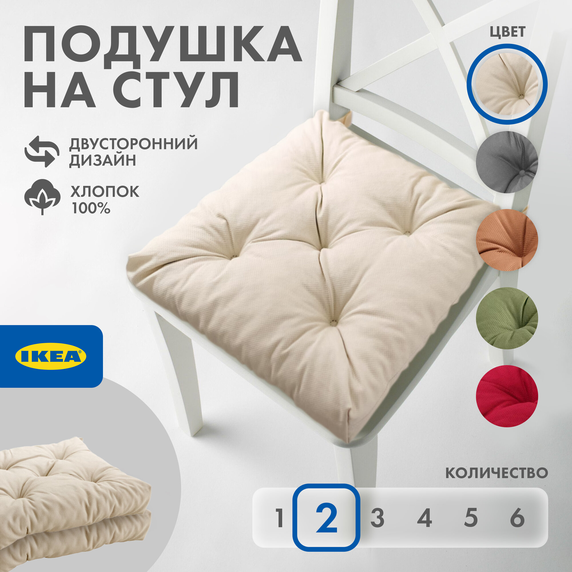 СохранитьПодушка на стул икеа малинда, 40 x 38 см, 2 шт, светло-бежевый интересное:
