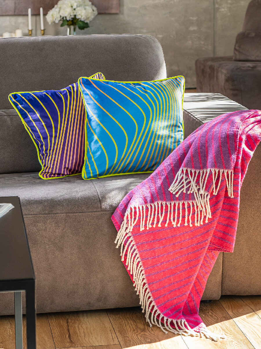 Купить Плед из хлопка гипоаллергенный для дивана и на кровать жаккардовый фиолетовый и розовый 110х170, Karim