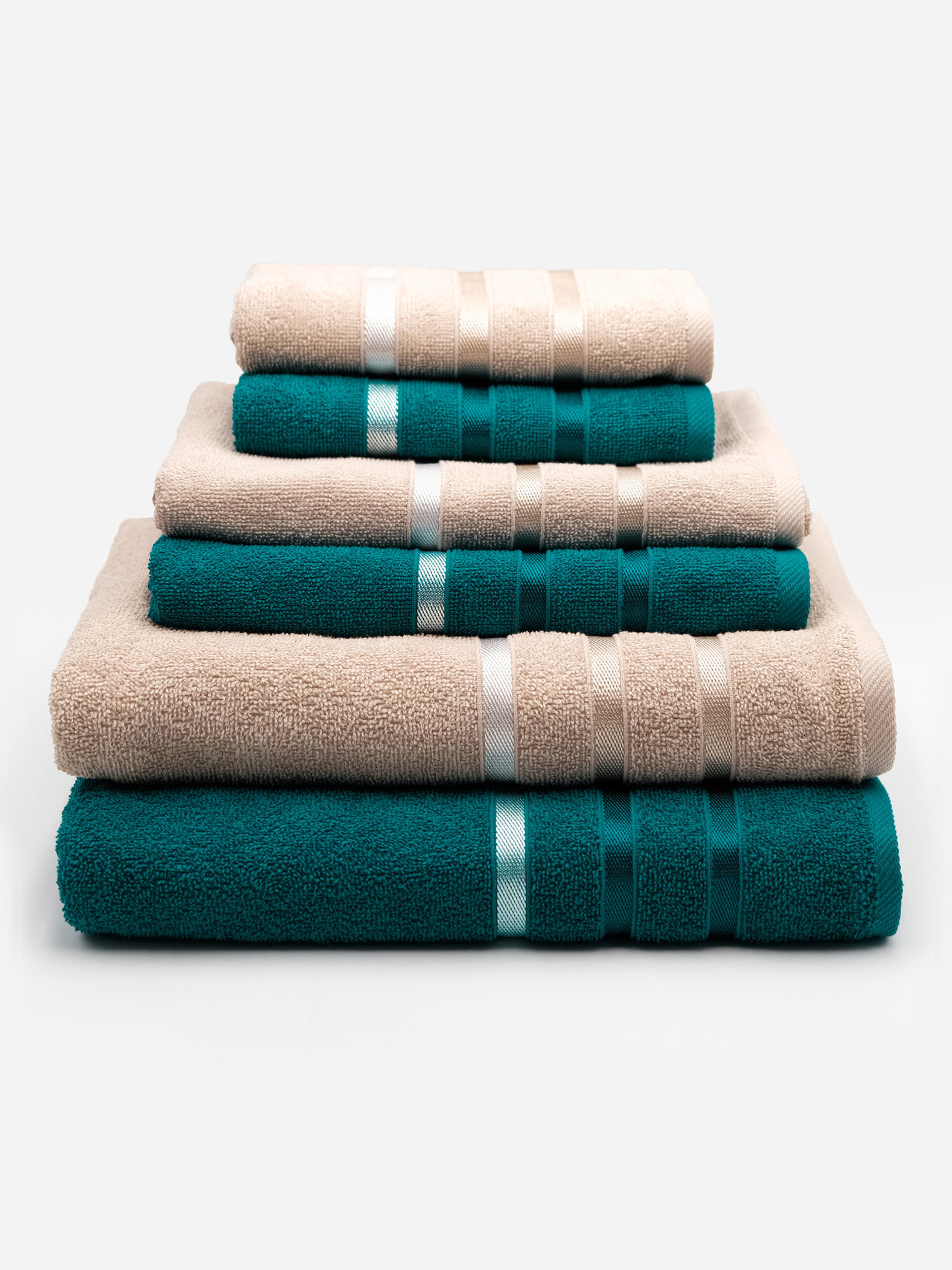 Купить Полотенца махровые "Аквамарин", 6 штук, 30x60 см, 50x80 см, 70x130см, цвет изумруд/бежевый