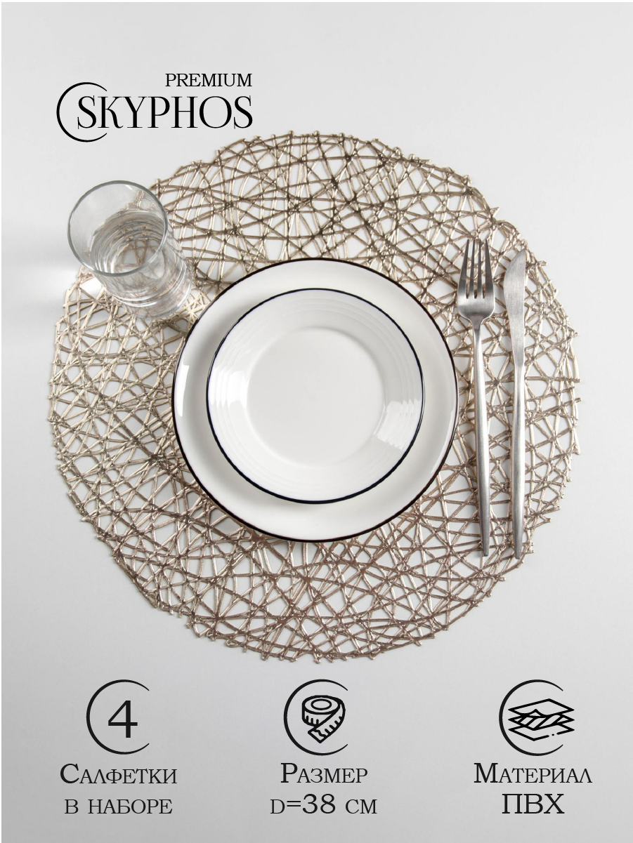 Набор салфеток сервировочных на стол «Паутинка», d=38 см, 4 шт, цвет золотой
