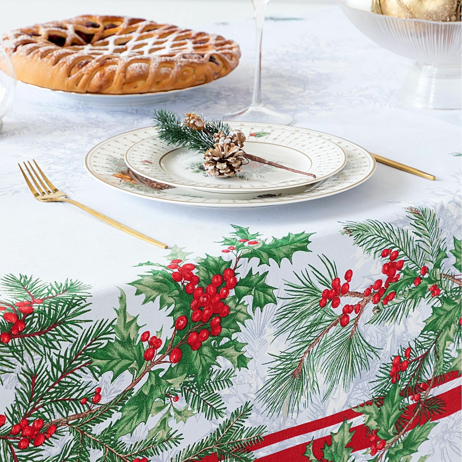 Скатерть рогожка 145х180 "Mia Cara" рис 30567-1 Зимние гранаты