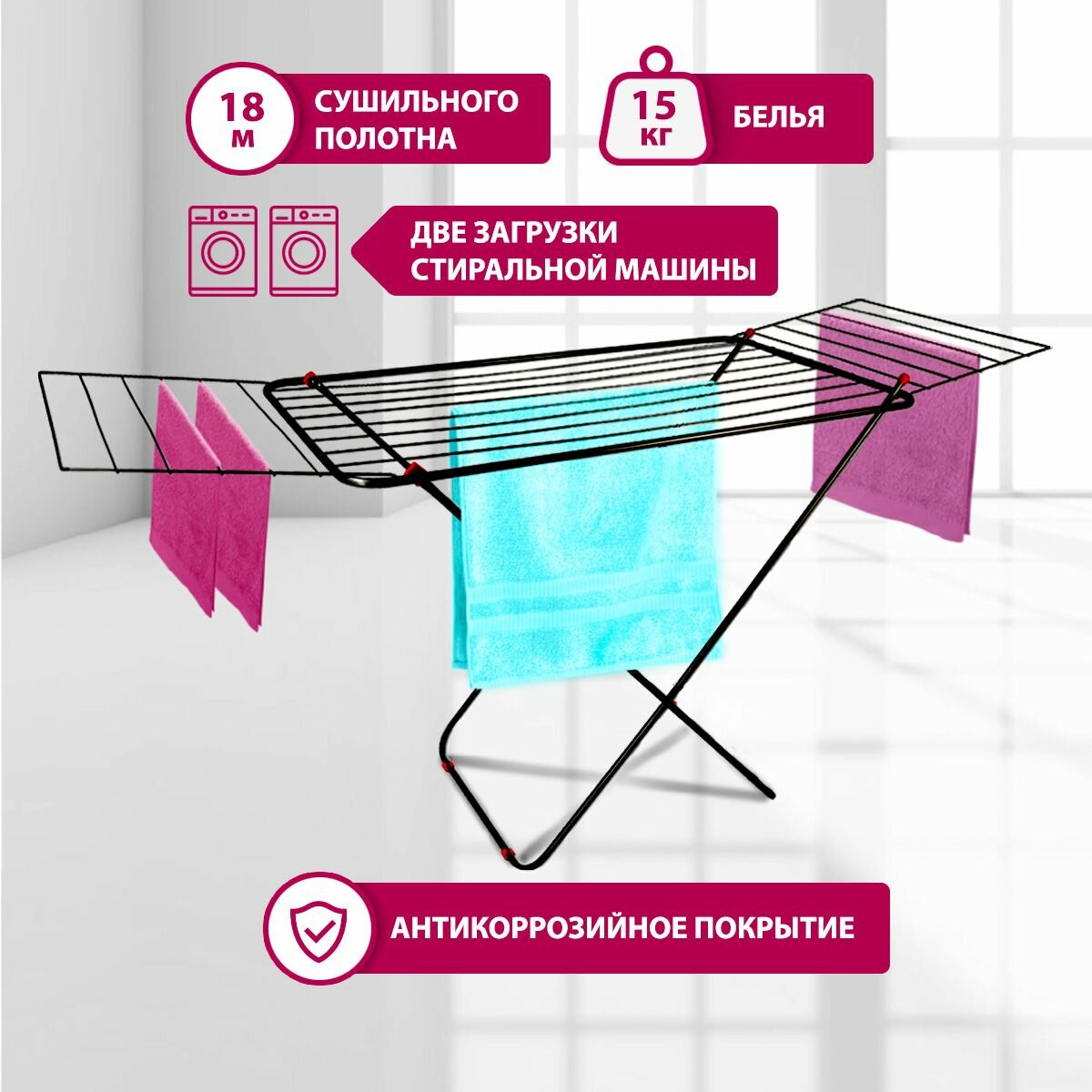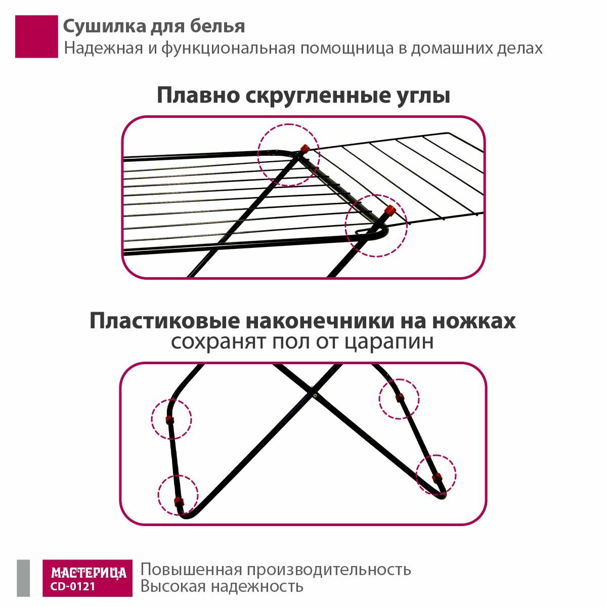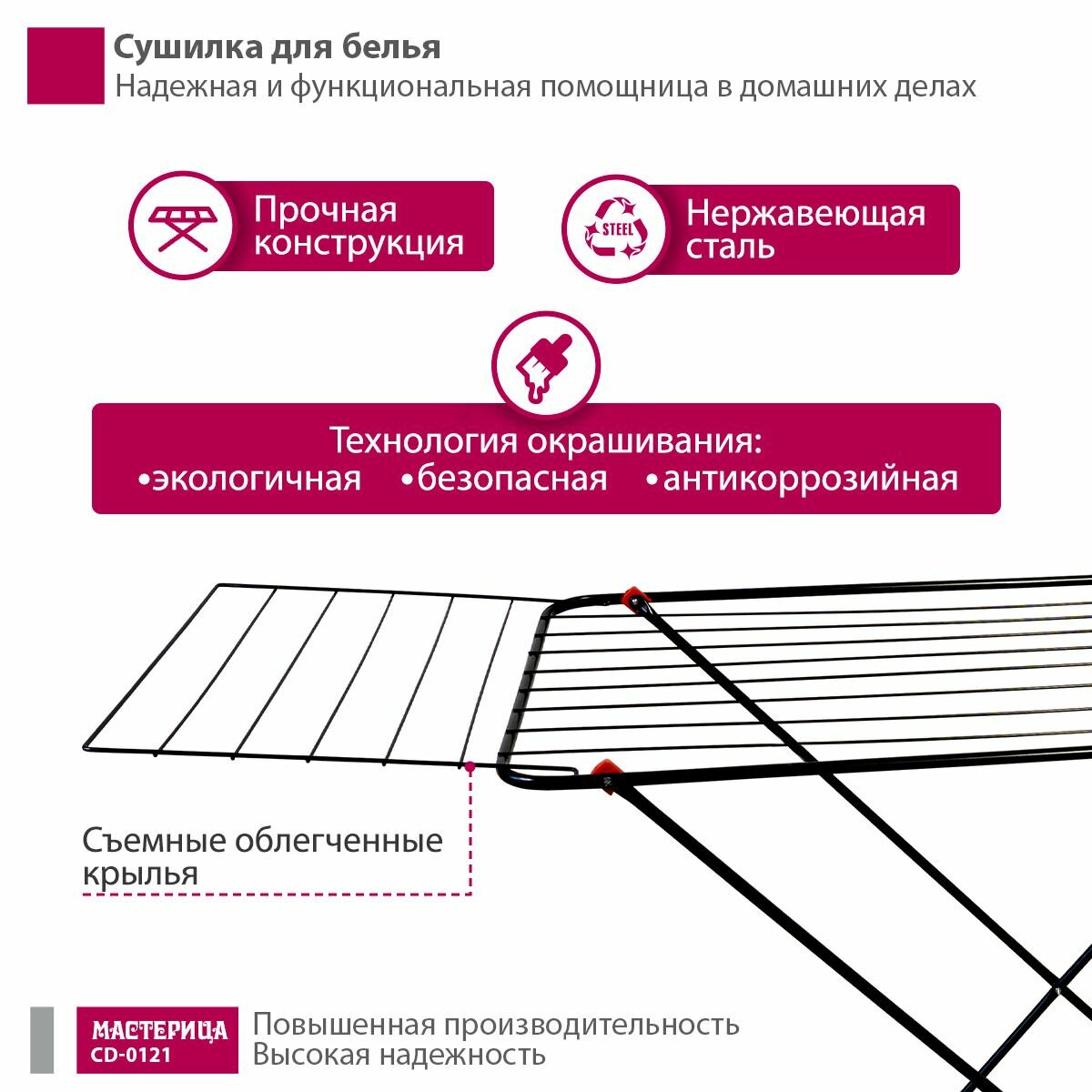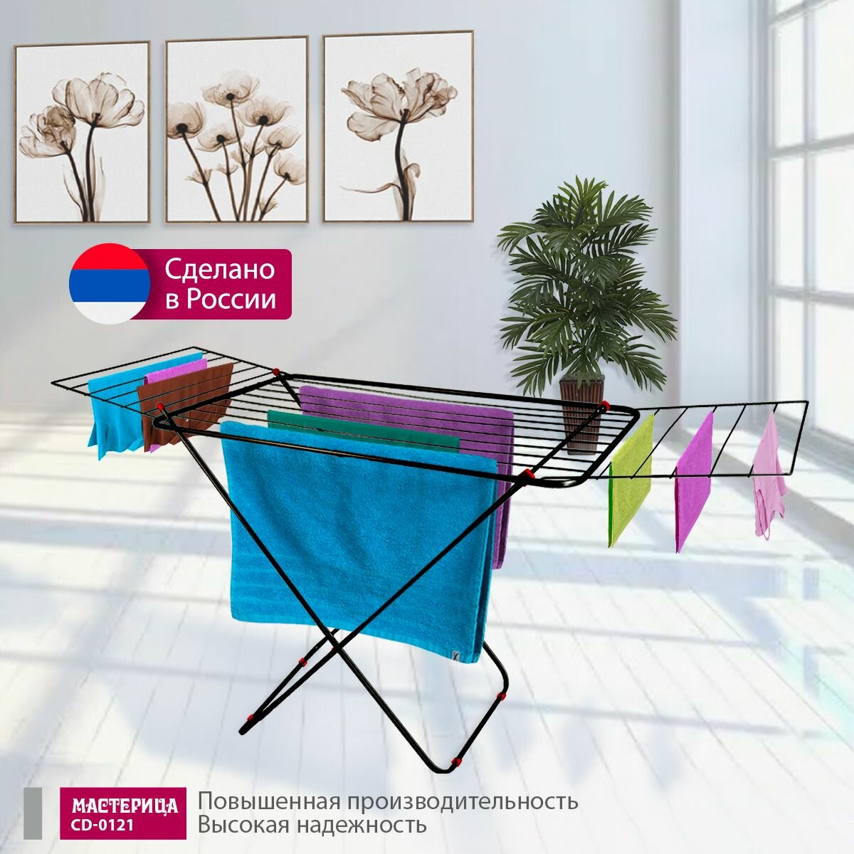 Сушилка для белья Мастерица Cd-0121, 18 м, цвет - черный, напольная CD-0121 черный . интересное: