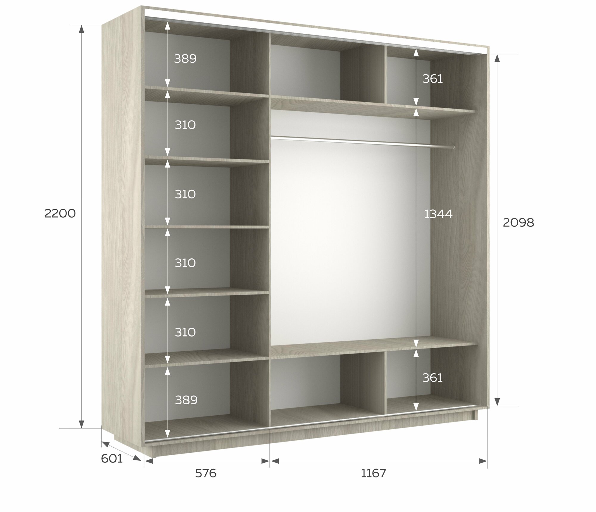 Шкаф-купе Экспресс Медиум 3-x дв 210 x 220 x 60 Зеркало Сонома