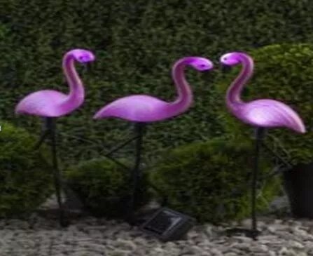 Уличный светильник Космос SOL367 на солнечной батарее "Три фламинго", розовый свет