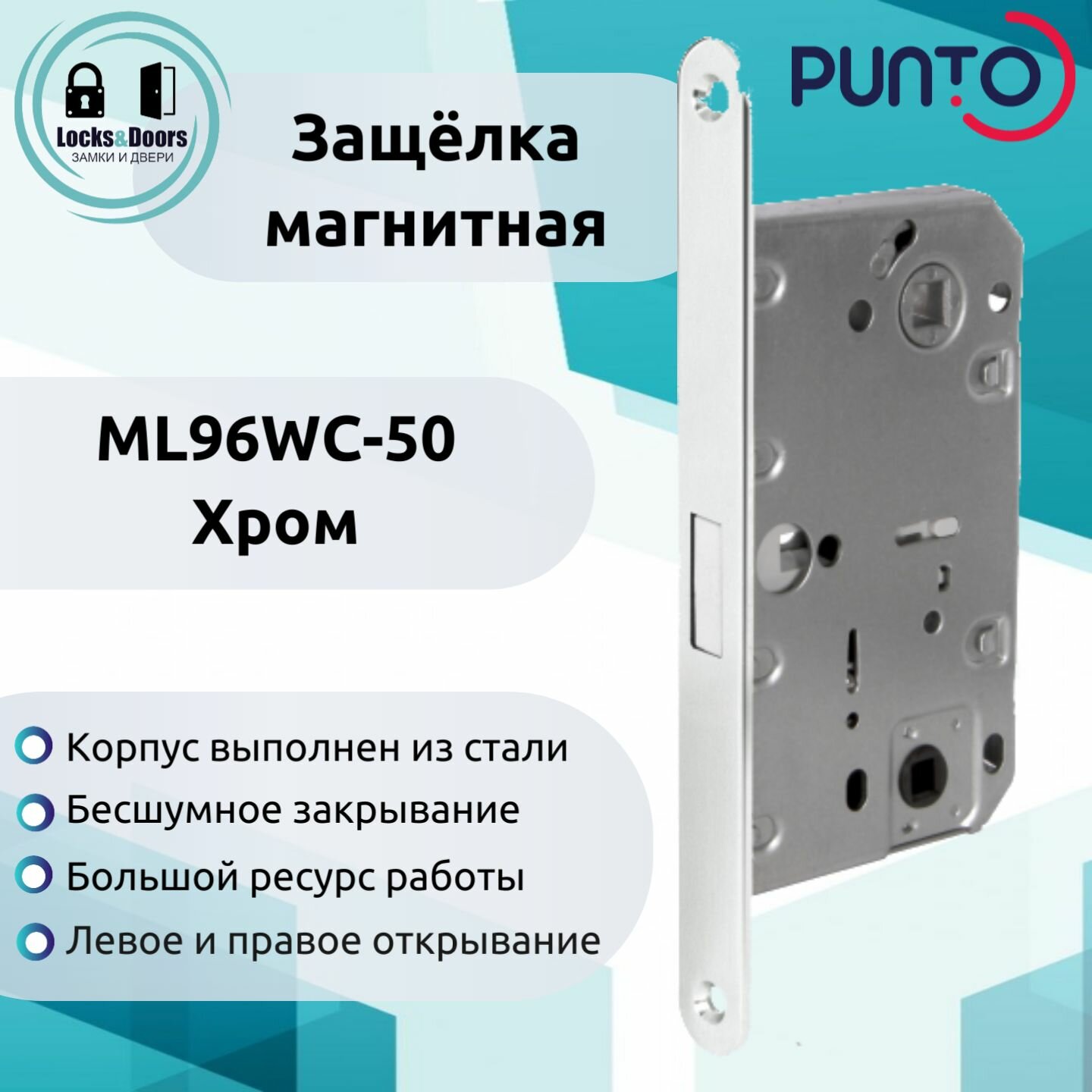 Замок магнитный врезной Punto (Пунто) ML96WC-50 CP хром для межкомнатных дверей