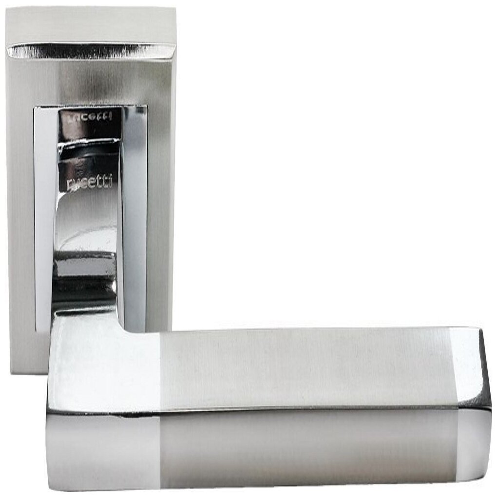 Ручка дверная Rucetti, на квадратной розетке, RAP 13-S SN/CP сатин никель/ хром