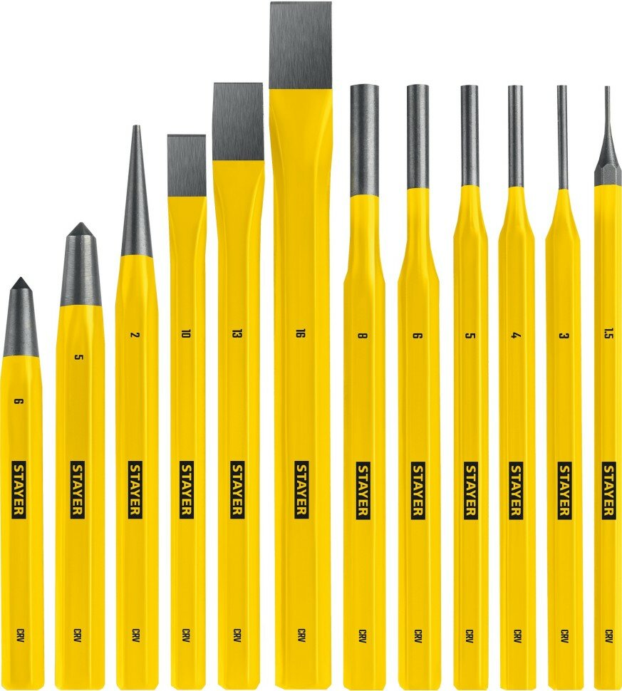 Купить STAYER HERCULES, 12 предметов, Набор зубил и кернеров в пластиковом держателе (21077-H12)