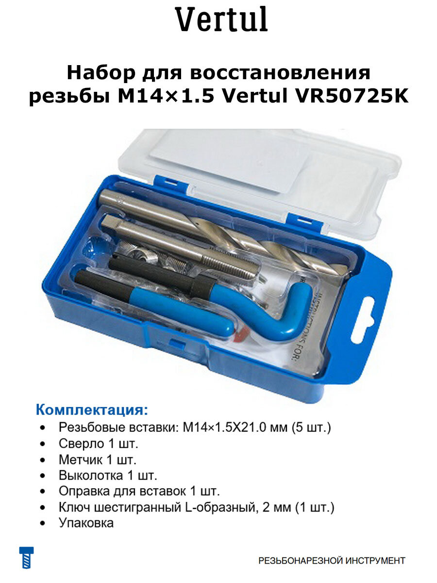 Набор для восстановления резьбы VERTUL M14х1.5 VR50725K