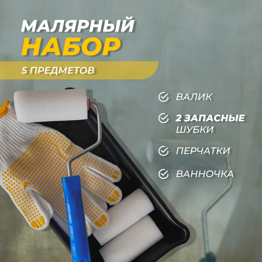 Набор для краски малярный . Ванночка, валик поролоновый 100 мм, 2 сменные шубки , перчатки интересное: