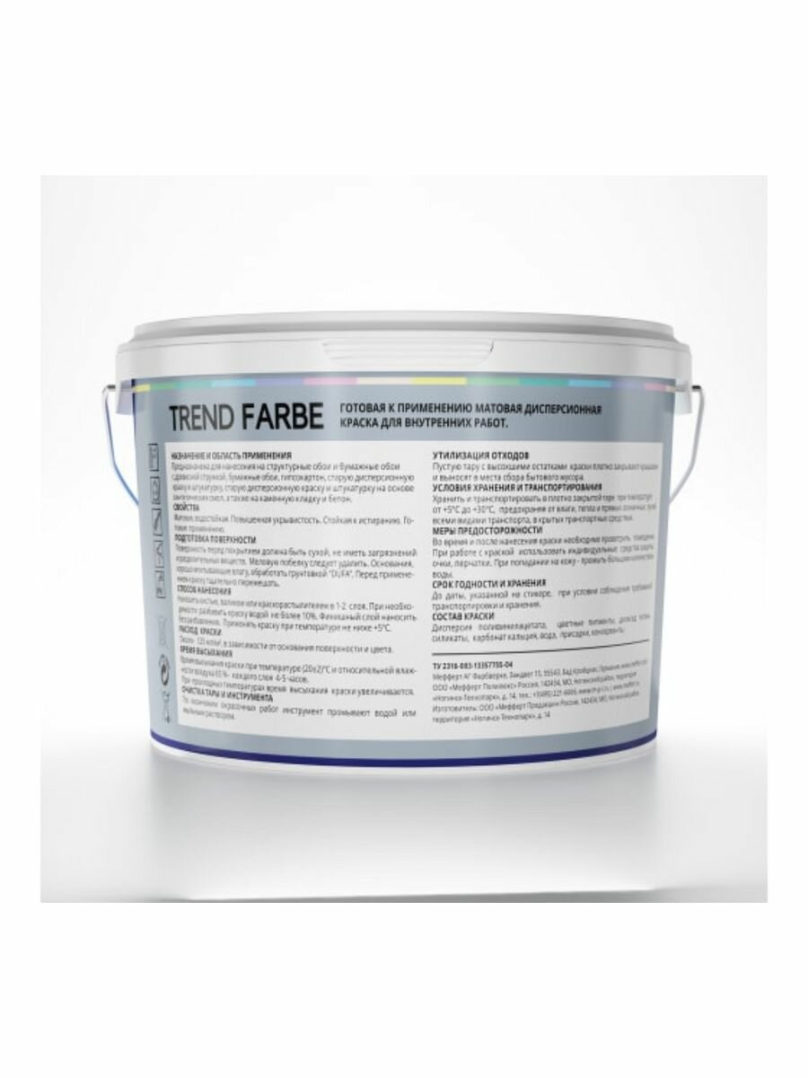 | Дополнительная информация | Краска в/д DUFA Trend Farbe Black для стен и потолков 10л черная, арт. МП00-005871 |