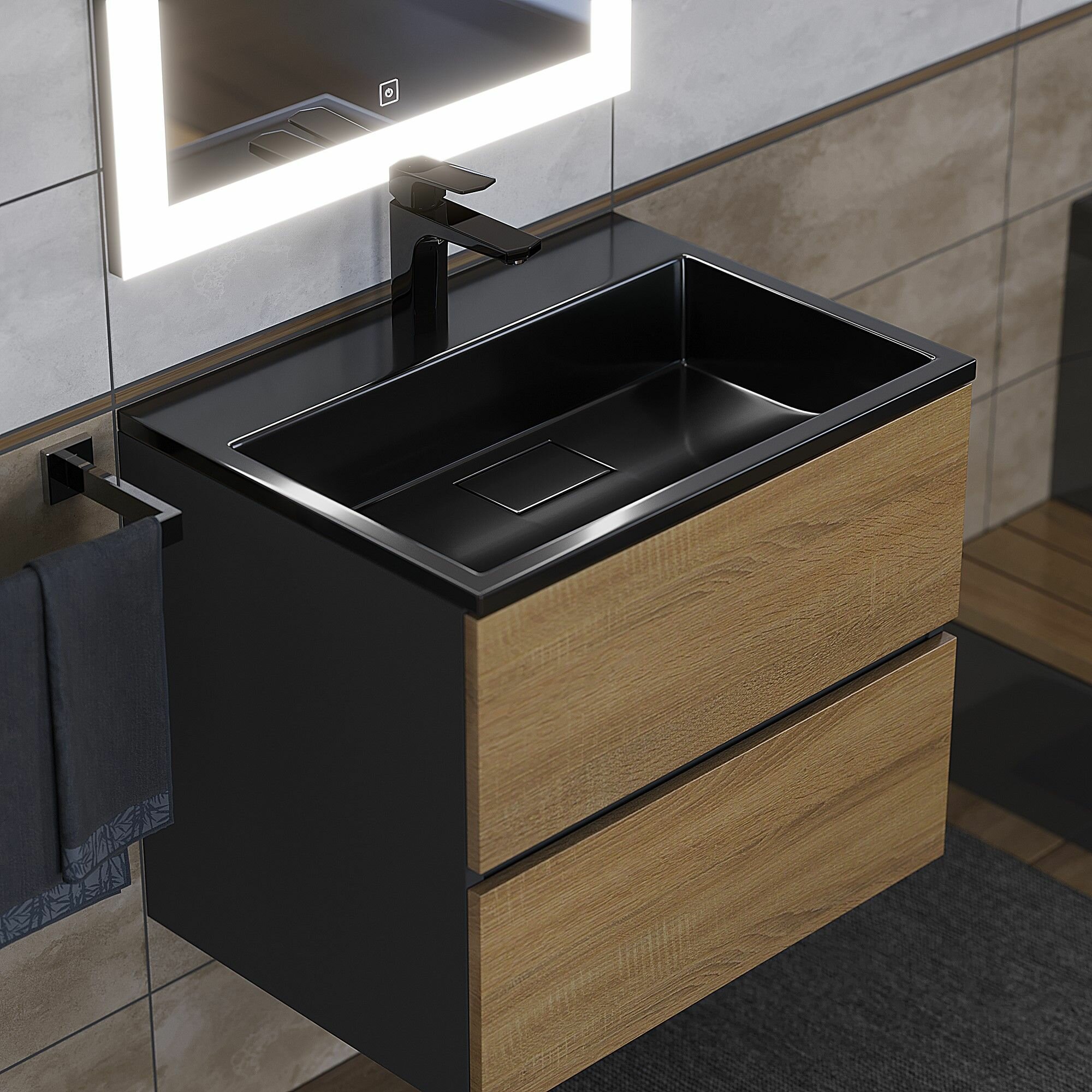 Раковина для ванной Uperwood Barsa 70х45х14,5 см, черный глянец