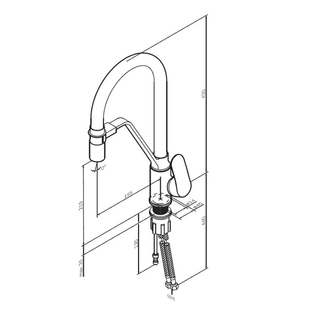 | Комплектация | Смеситель для кухни, гибкая подводка, инструкция |