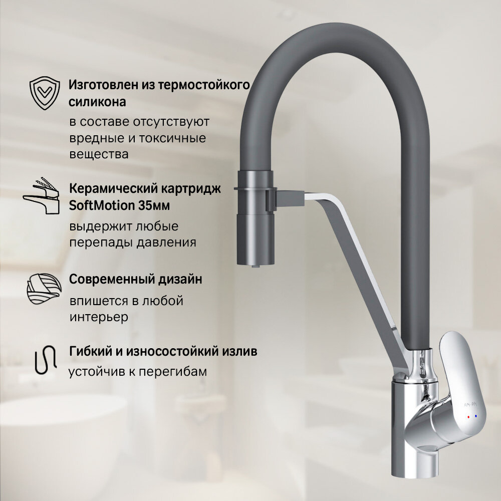 Купить Смеситель для кухни AM.PM Chic, с гибким изливом, с каналом для питьевой воды, латунь, черный