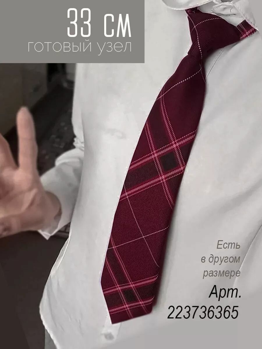 Галстук 28 см в бордовую клетку на резинке школьный интересное: