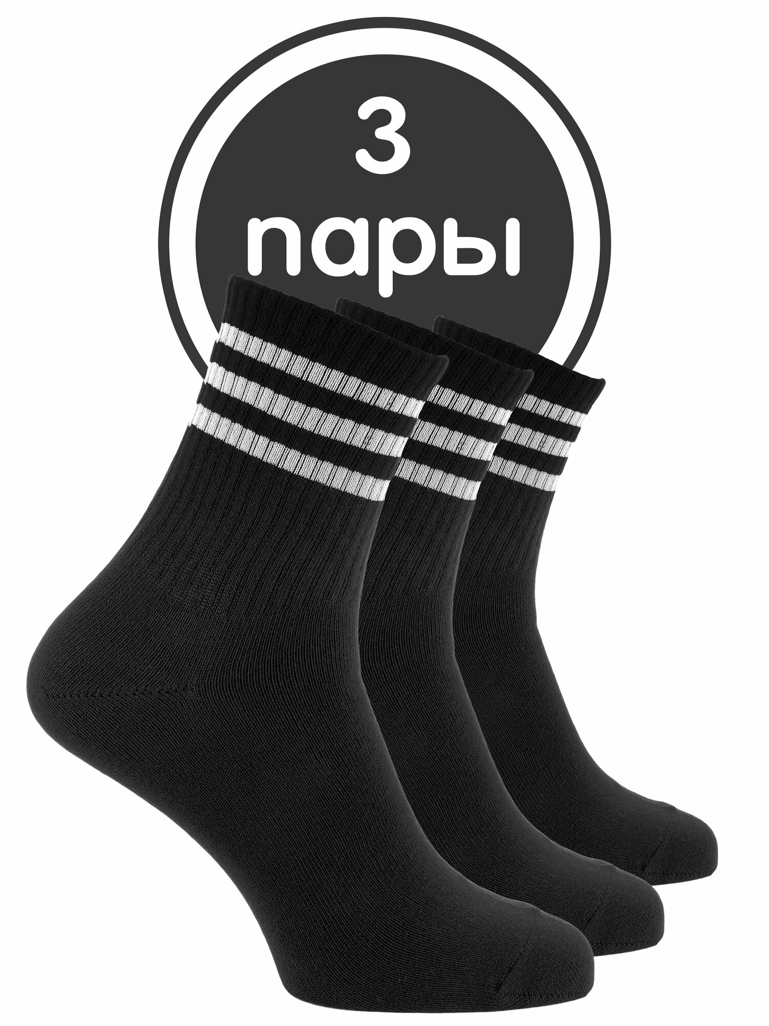 Носки мужские спортивные BRSO, набор из 3 пар, размер 23 (37-38), цвет черный с белыми полосками