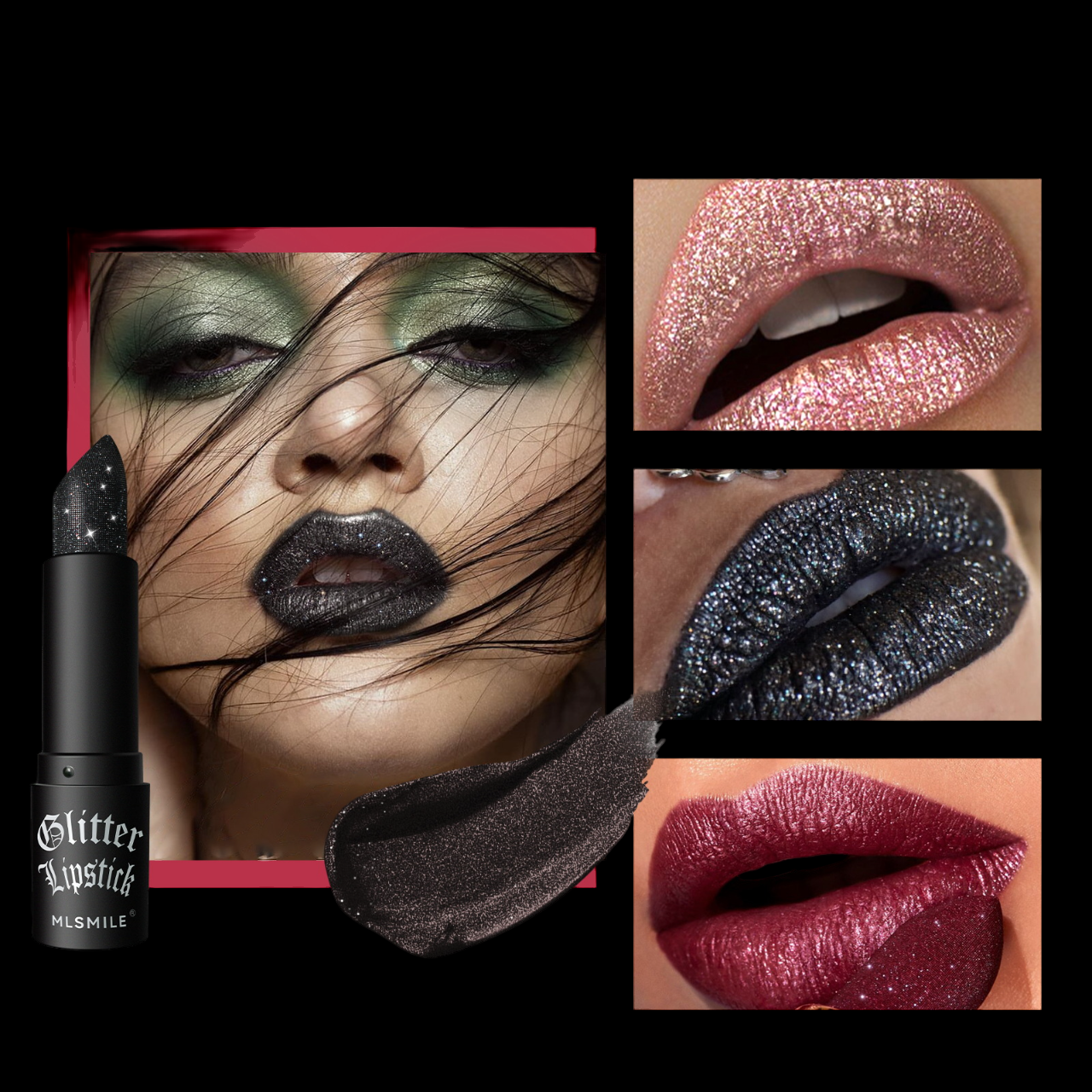 Помада с блестками MLSMILE черная интересное:
