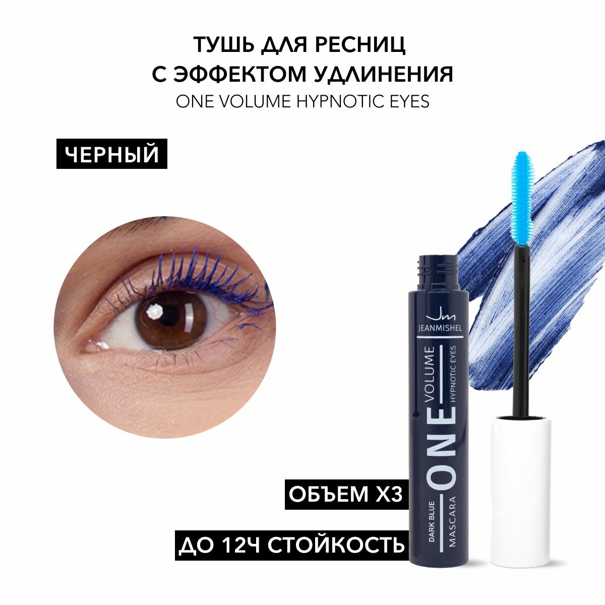 Купить Jeanmishel Тушь для ресниц ONE Volume Hypnotic Eyes Dark Blue, улучшенная силиконовой щеточка