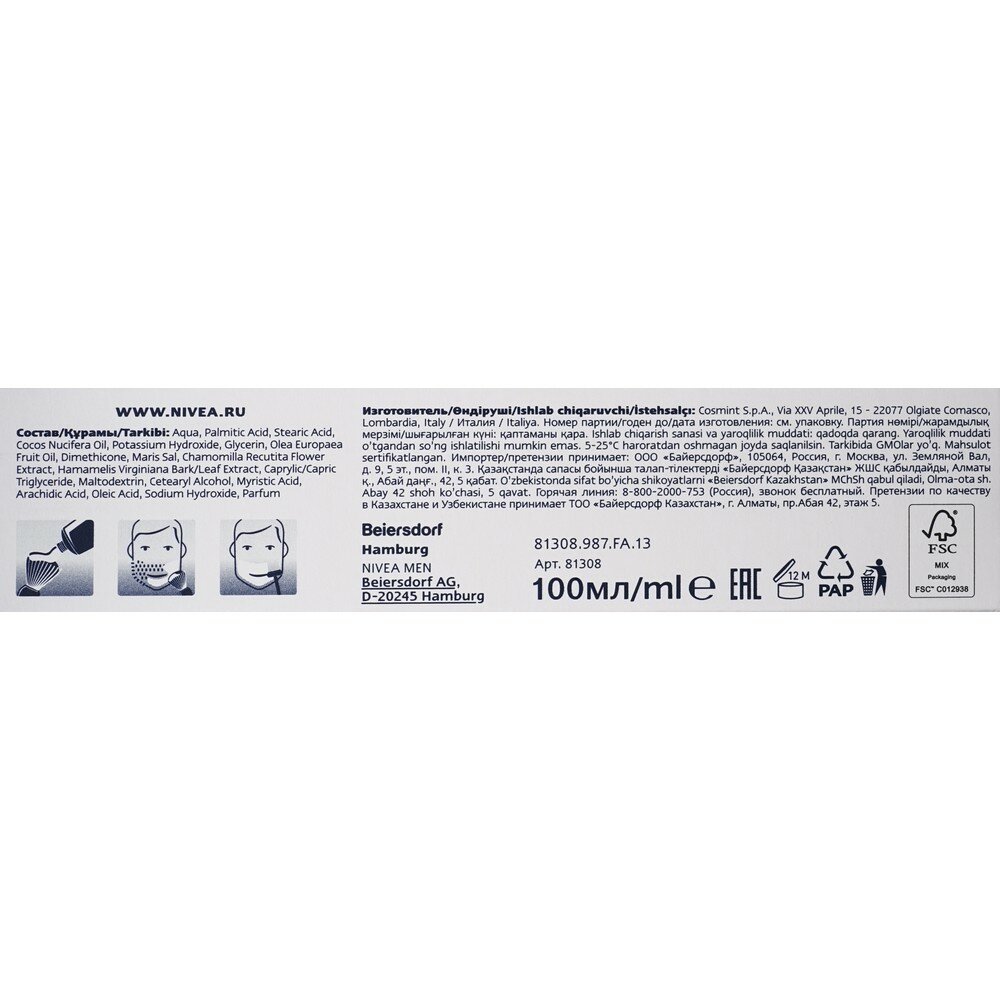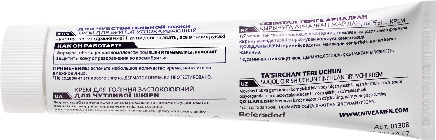 Крем для бритья успокаивающий Nivea Men для чувствительной кожи, без содержания спирта, 100 мл. интересное: