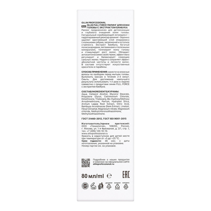 OLLIN, Пилинг Full Force для кожи головы с экстрактом бамбука, 80 мл