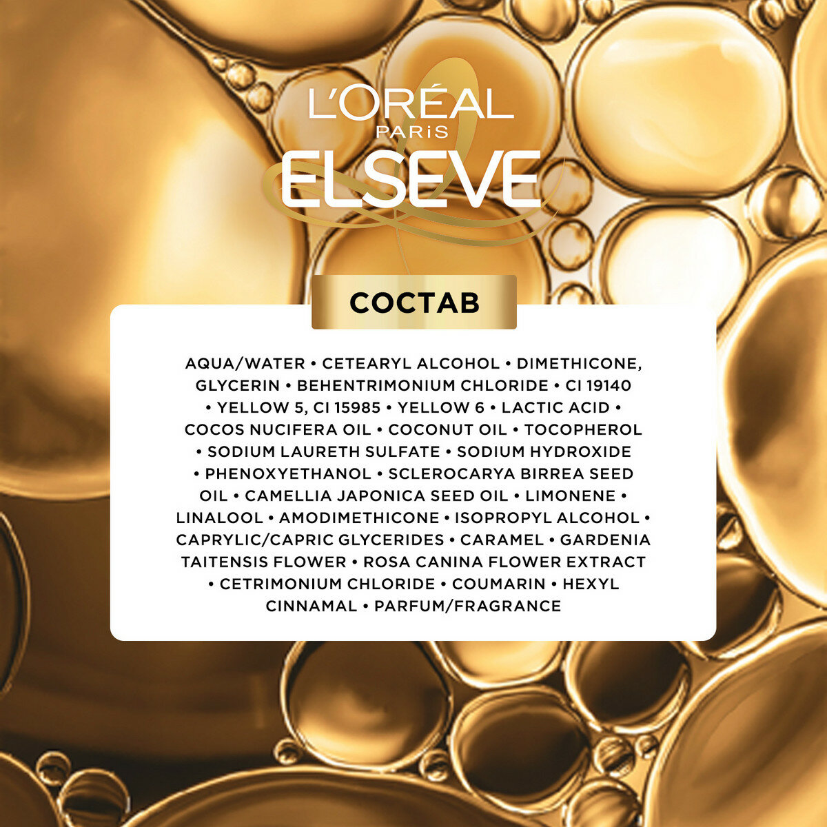 | Состав | aqua/water, cetyl alcohol, glycerin, amodimethicone, ci 77891/titanium dioxide, ci 77491/iron oxides, ci 15985/yellow 6, ci 19140/yellow 5, chamomilla recutita extract/matricaria flower extract, mica, cocos nucifera oil/coconut oil, hydroxyethylcellulose, stearyl alcohol, behentrimonium chloride, trideceth-6, chlorhexidine digluconate, helianthus annuus seed oil/sunflower seed oil, nelumbium speciosum extract/nelumbium speciosum flower, extract, linum usitatissimum flower extract, isopropyl alcohol, dipalmitoylethyl hydroxyethylmonium methosulfate, caprylic/capric triglyceride, myristyl alcohol, caramel, gardenia tahitensis flower extract, rosa canina flower extract, bisabolol, cetyl esters, cetearyl alcohol, cetrimonium chloride, bht, citric acid, glycine soja oil/soybean oil, parfum/fragrance |