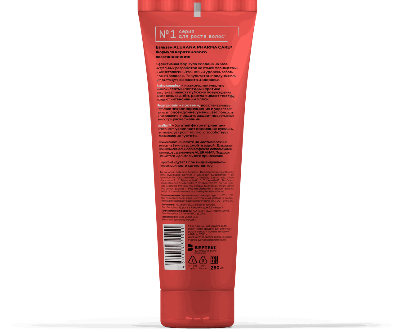 Бальзам для волос Alerana Pharma care, формула кератиновое восстановление, 260 мл интересное: