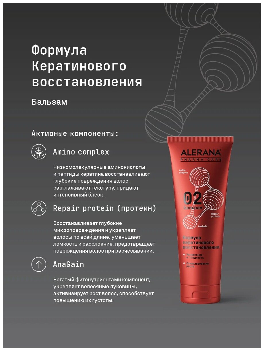 Бальзам для волос Формула Кератинового восстановления Pharma Care, 260 мл, Alerana интересное: