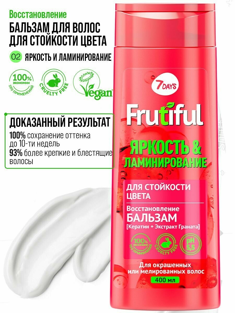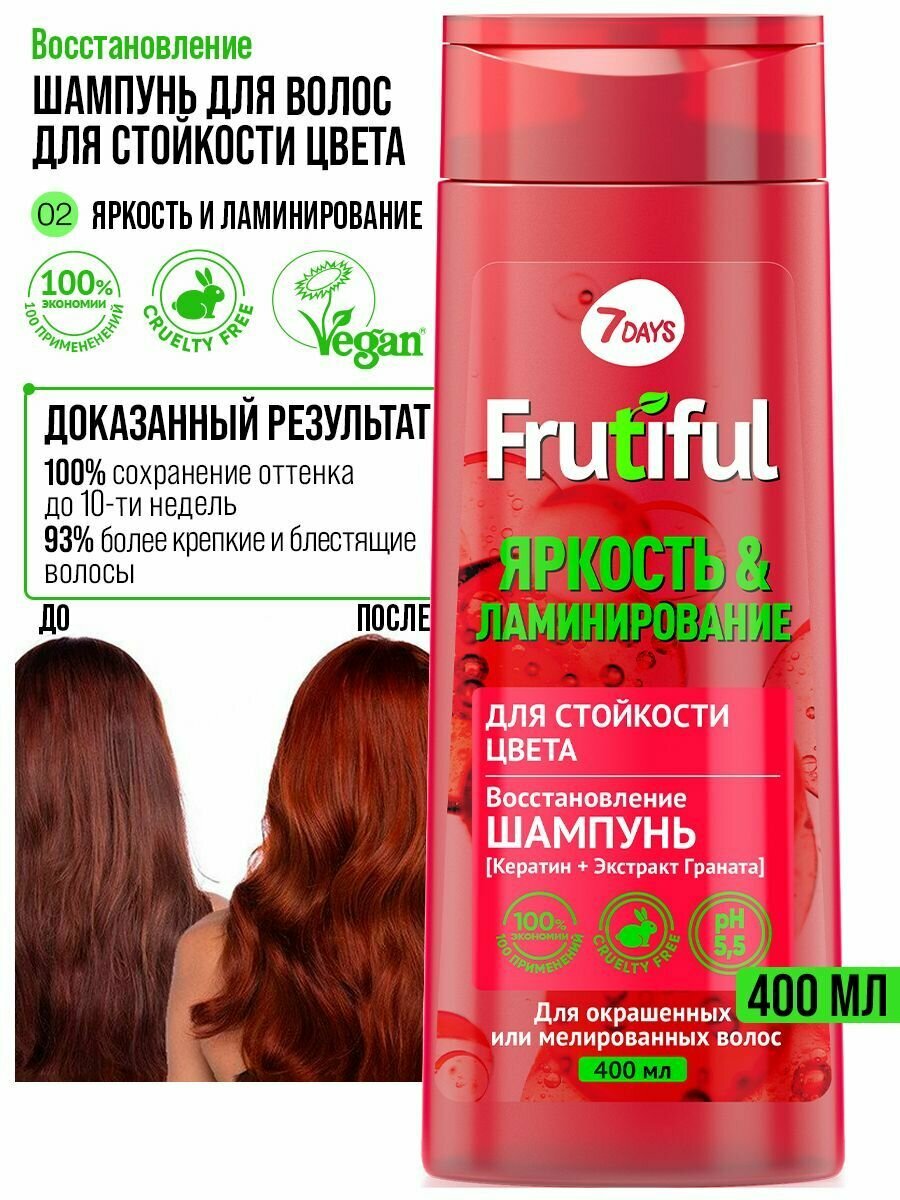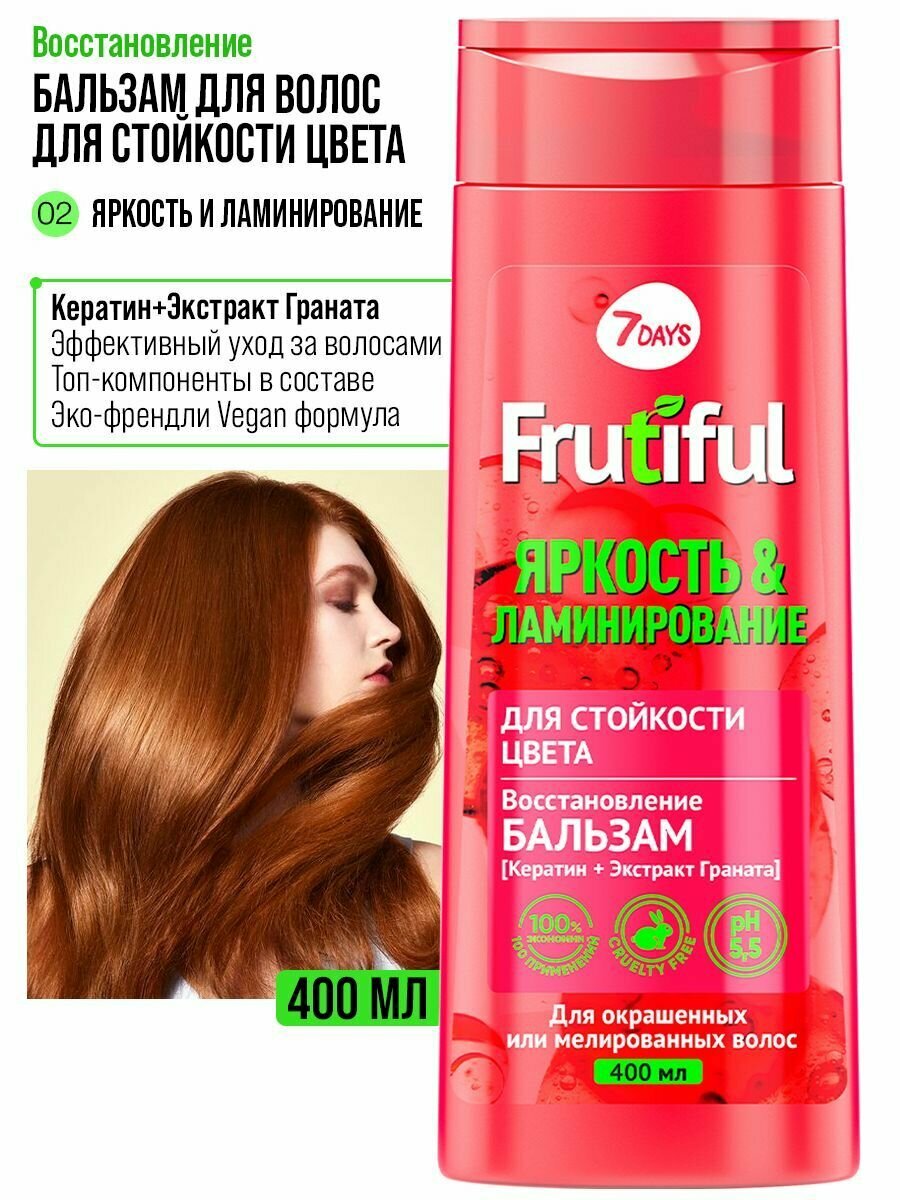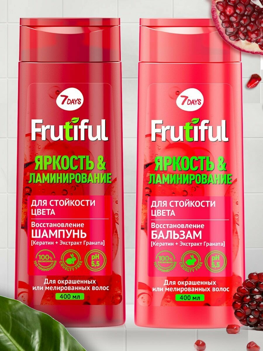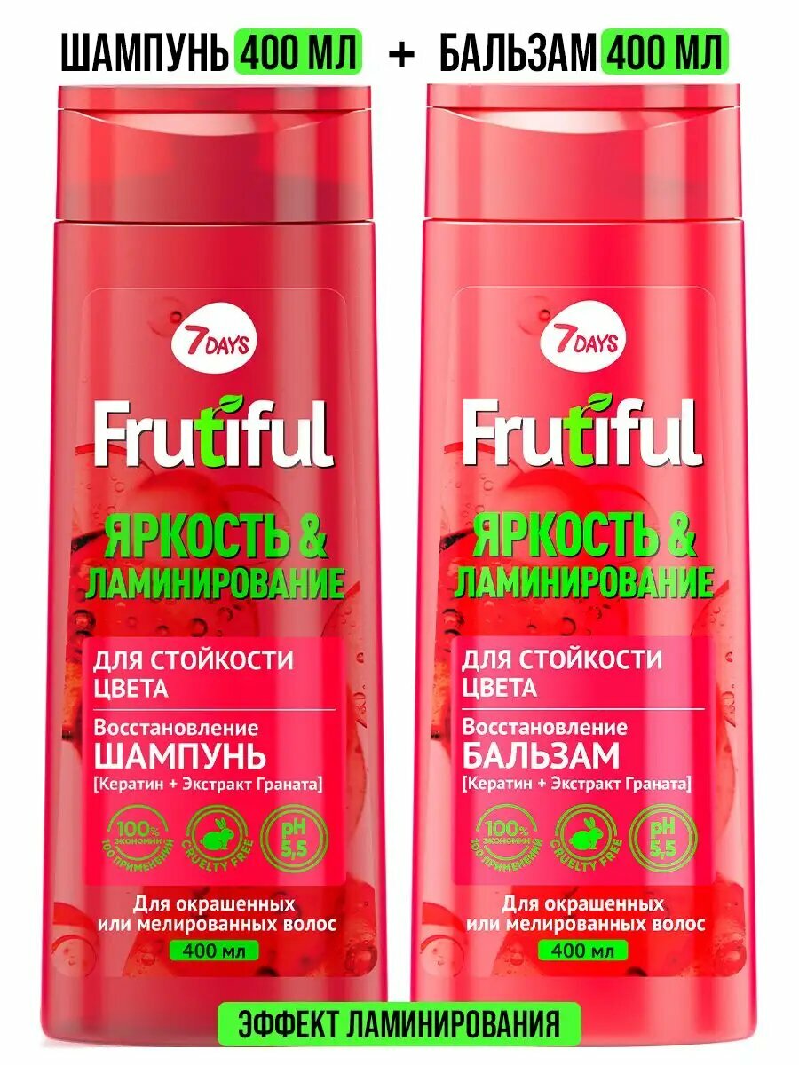 Шампунь и бальзам для волос 7DAYS FRUTIFUL Яркость и Ламинирование, набор для окрашенных волос интересное: