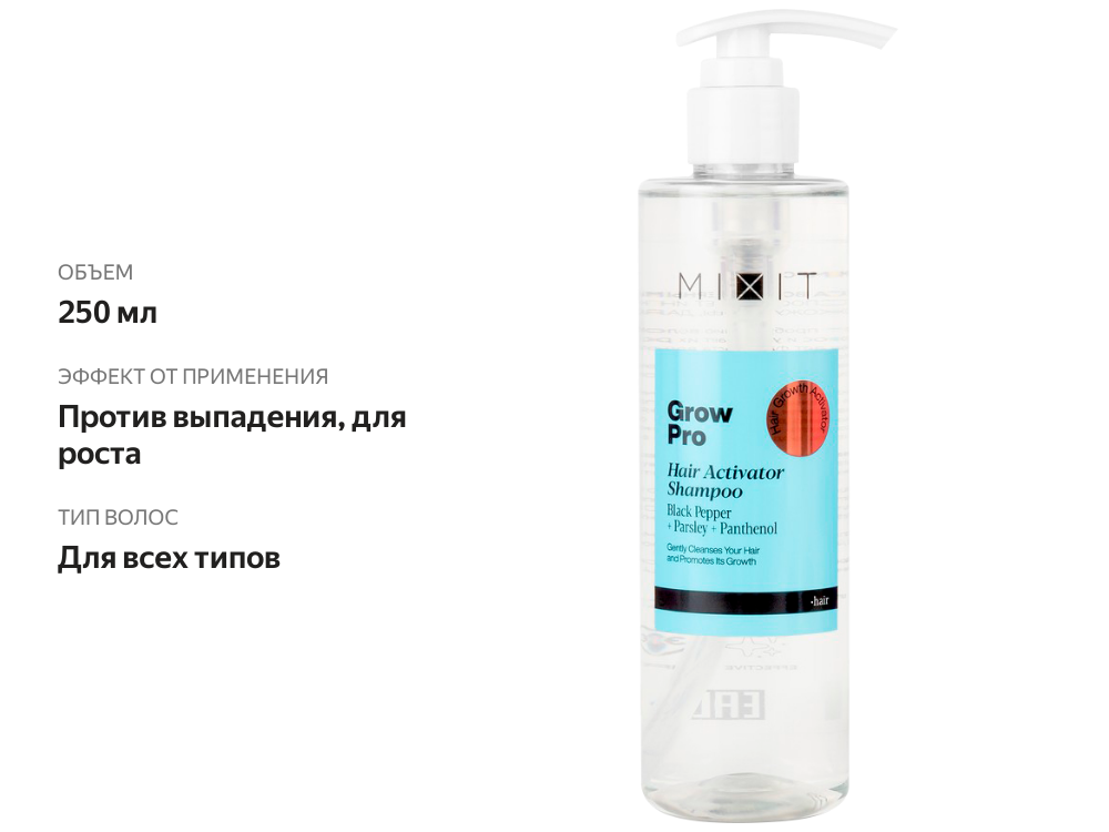 Шампунь-активатор роста волос Grow Pro Hair Activator Shampoo с черным перцем 250мл интересное: