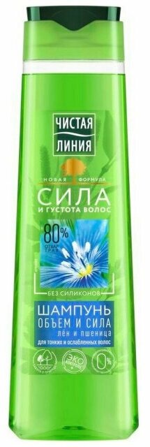 Чистая Линия шампунь объем и сила для тонких и ослабленных волос с экстрактами льна и пшеницы, 400 мл