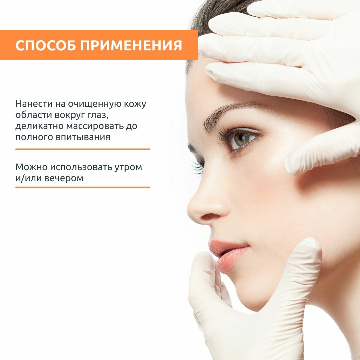 | Способ применения | нанести на очищенную кожу области вокруг глаз, деликатно массировать до полного впитывания. Можно использовать утром и/или вечером |