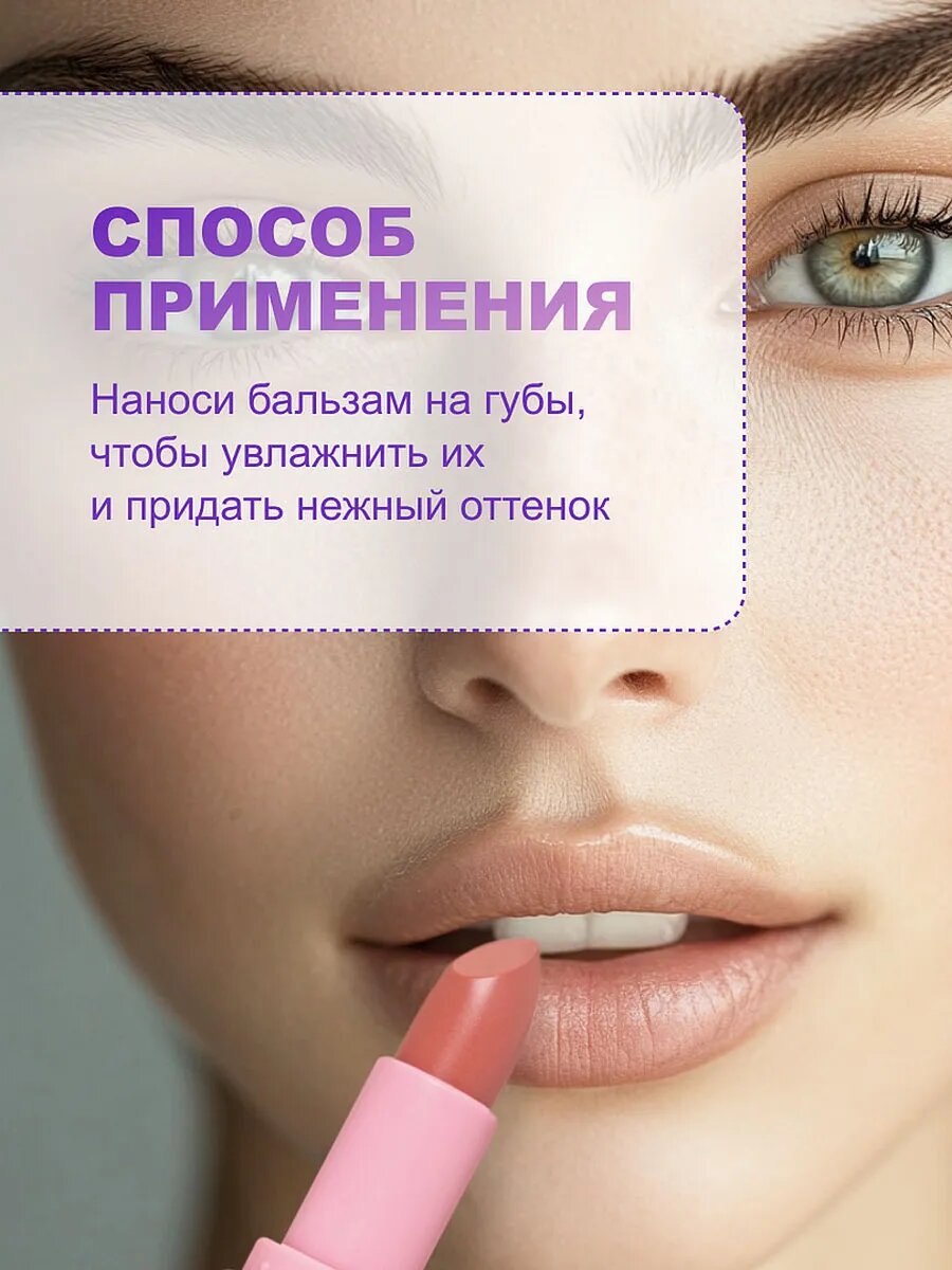 | Способ применения | Наноси бальзам на губы, чтобы увлажнить их и придать нежный оттенок. |