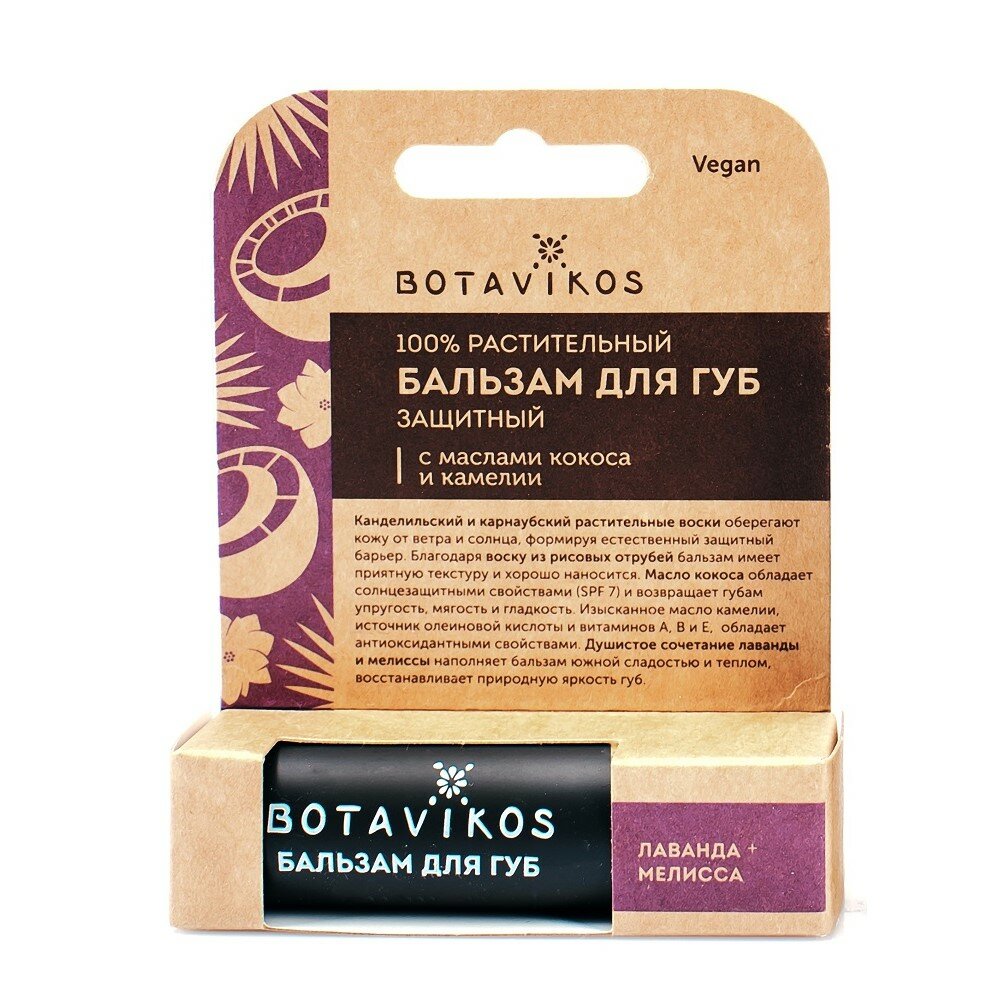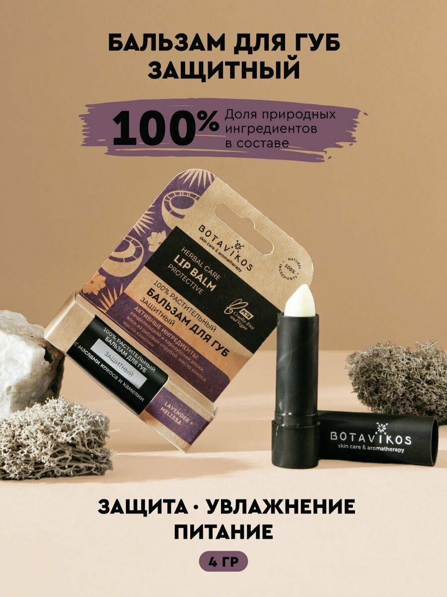 Бальзам для губ BOTAVIKOS "Защитный", кокос/камелия с ароматом лаванды и мелиссы, 4 гр