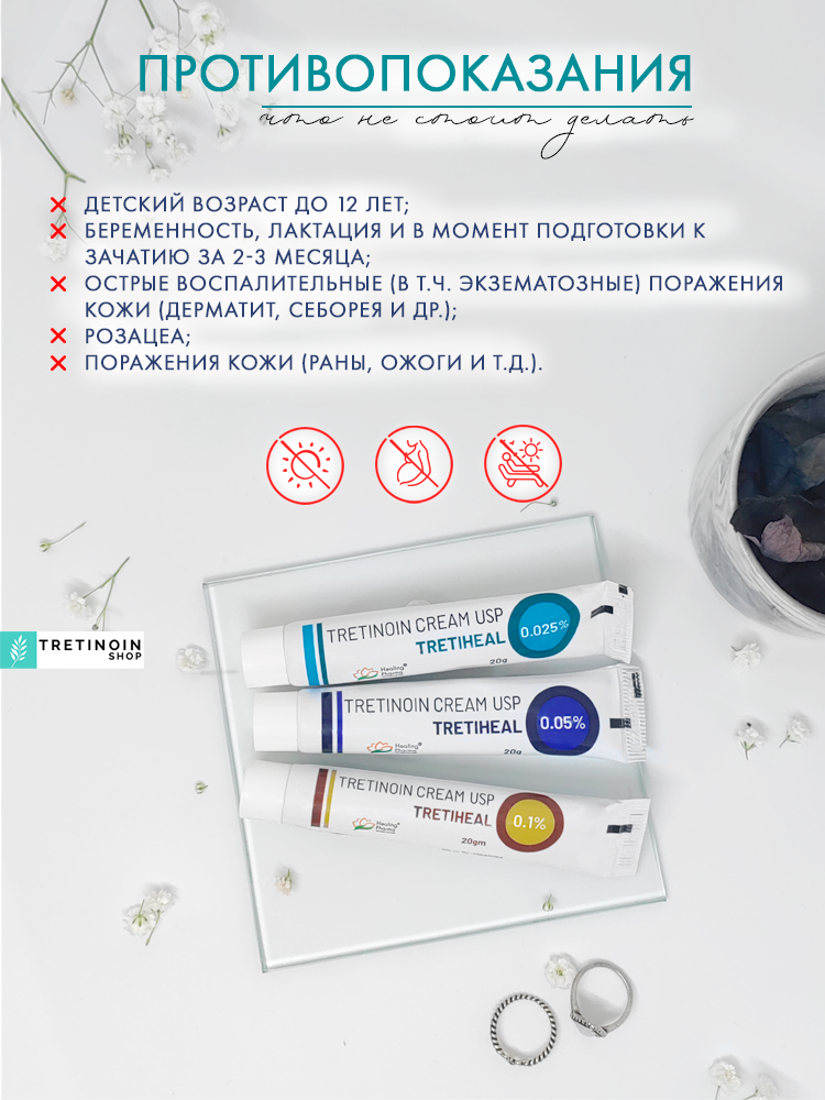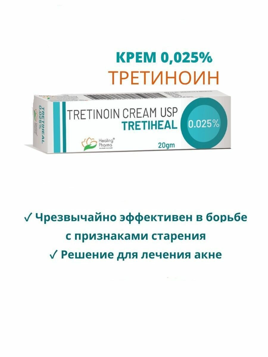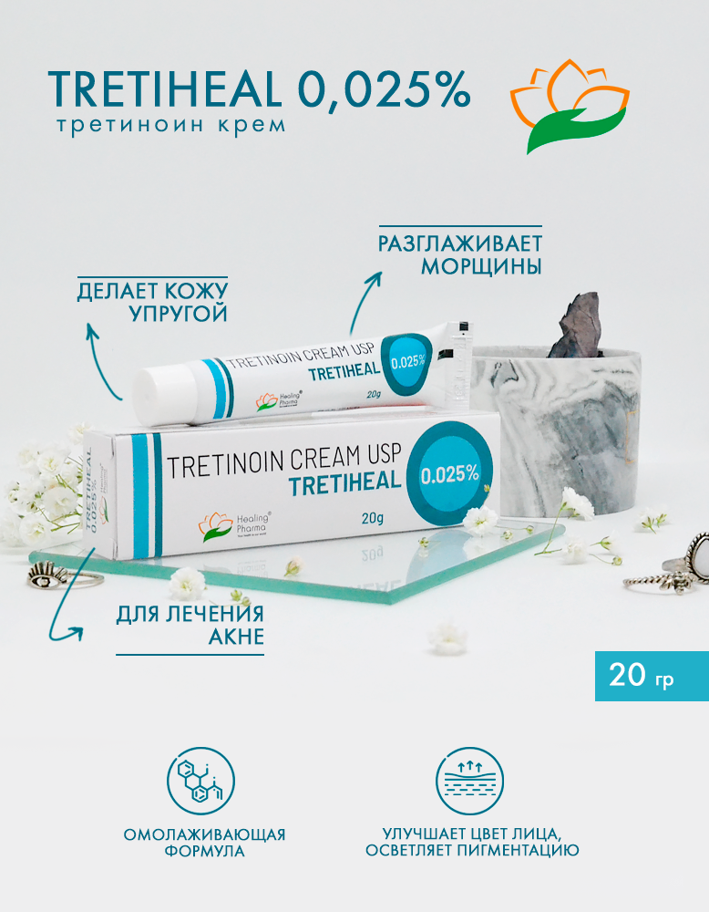 TRETIHEAL Tretinoin Cream USP 0.025%, Healing Pharma (третихил третиноин крем 0,025%), 20 г. интересное: