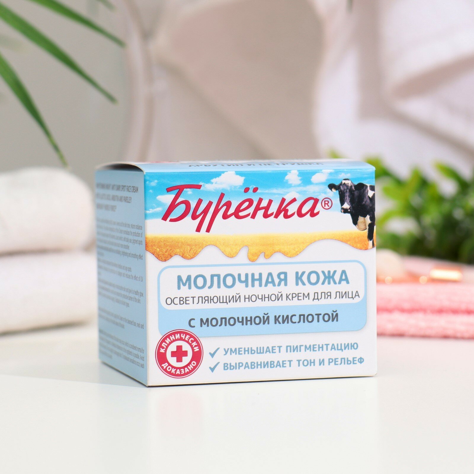 Крем для лица ночной отбеливающий от пигментации увлажняющий Буренка с Молочной Кислотой, Арбутином и Петрушкой 100мл