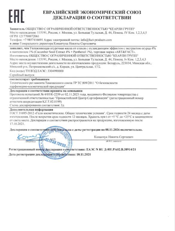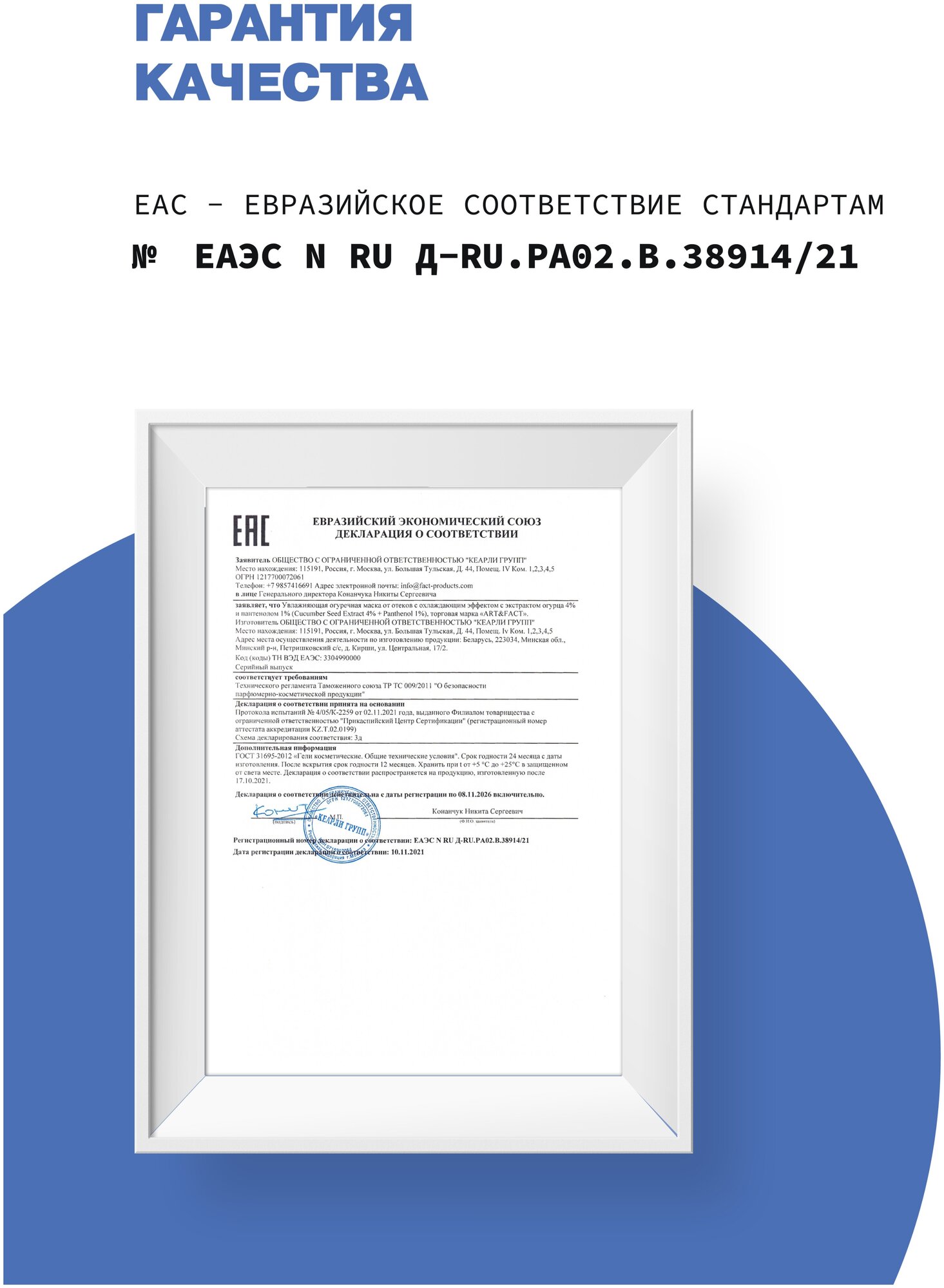ART&FACT. Маска для лица от отеков с охлаждающим эффектом с экстрактом огурца и пантенолом, 50 мл интересное: