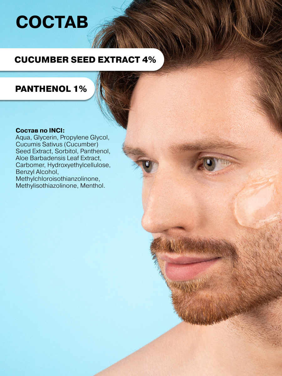| Состав | Aqua, Glycerin, Propylene Glycol, Cucumis Sativus (Cucumber) Seed Extract, Sorbitol, Panthenol, Aloe Barbadensis Leaf Extract, Carbomer, Hydroxyethylcellulose, Benzyl Alcohol, Methylchloroisothianzolinone, Methylisothiazolinone, Menthol |
