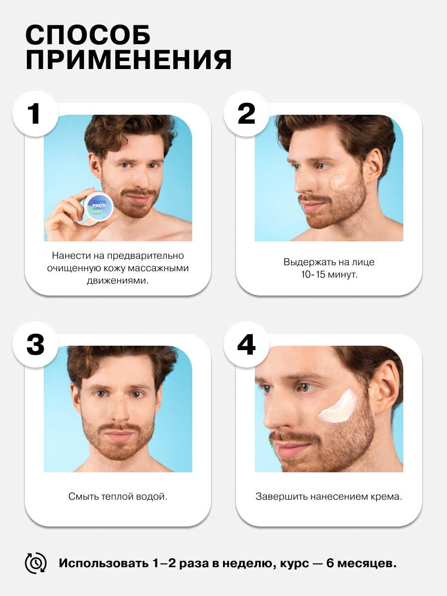 | Способ применения | Нанести на предварительно очищенную кожу массажными движениями, выдержать на лице 10-15 минут, далее смыть теплой водой, завершить нанесением крема. Использовать 1-2 раза в неделю, курсом 6 месяцев. |